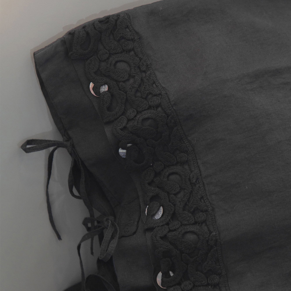 lino ligero adornada con encaje de poema y cierre de encaje.