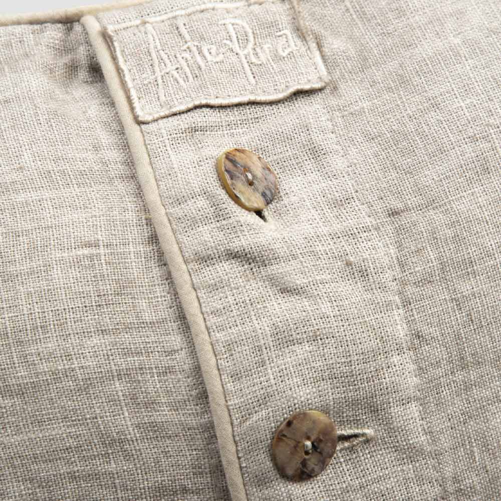 Funda de Almohada de Lino Pesado con Decoración Agoya y Botones de Ribete - Mediterráneo
