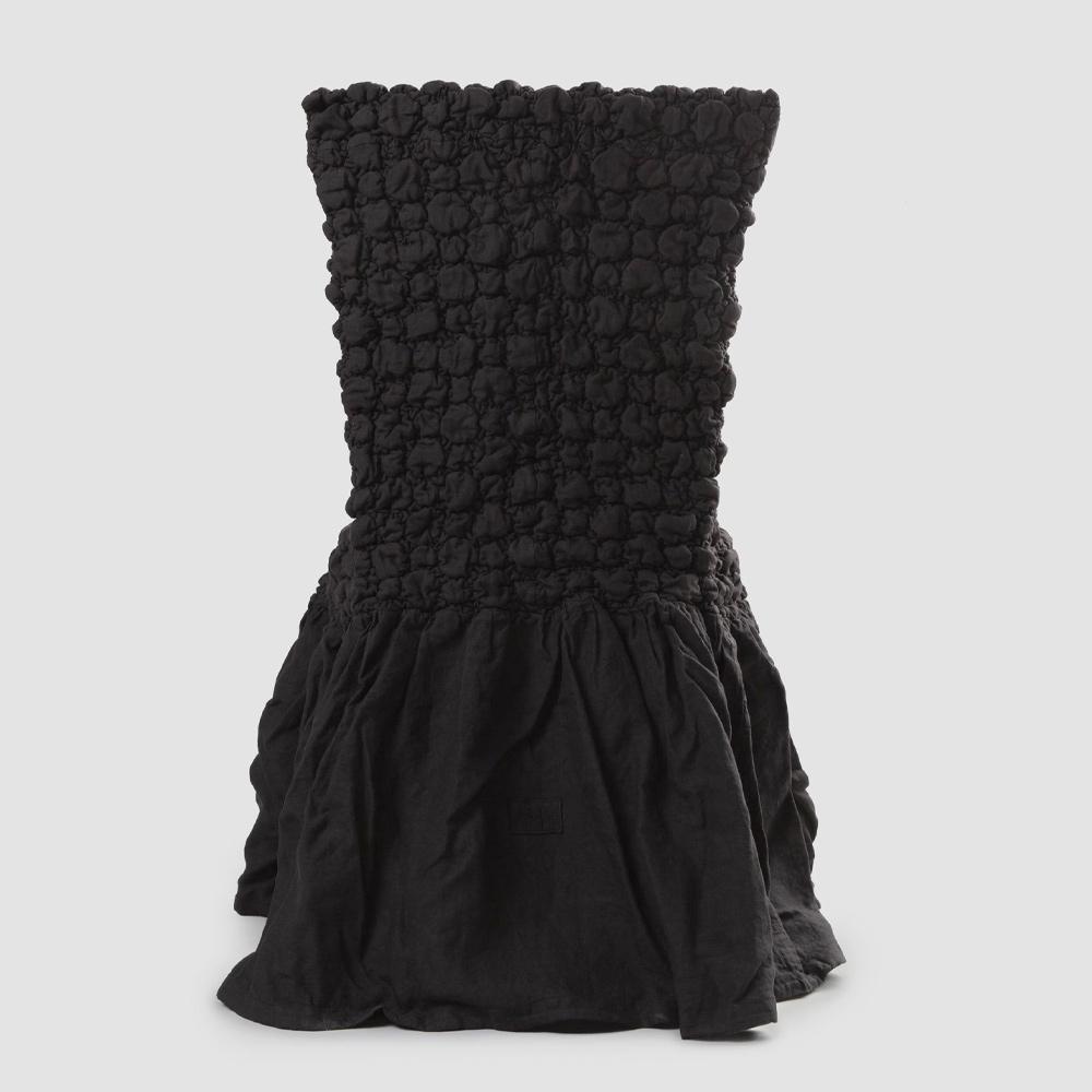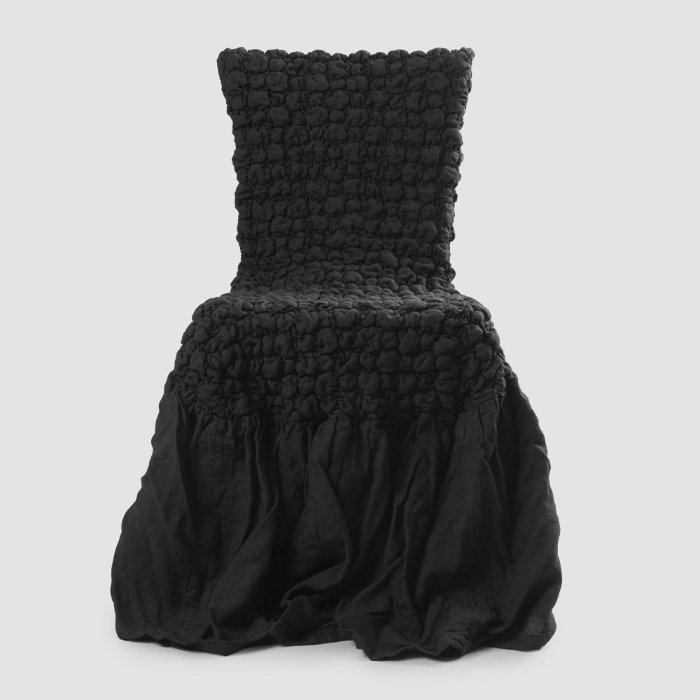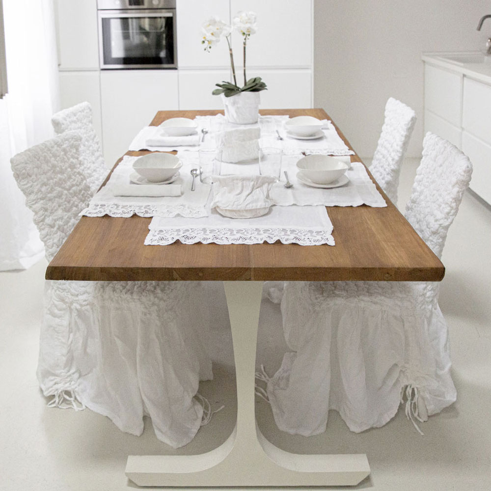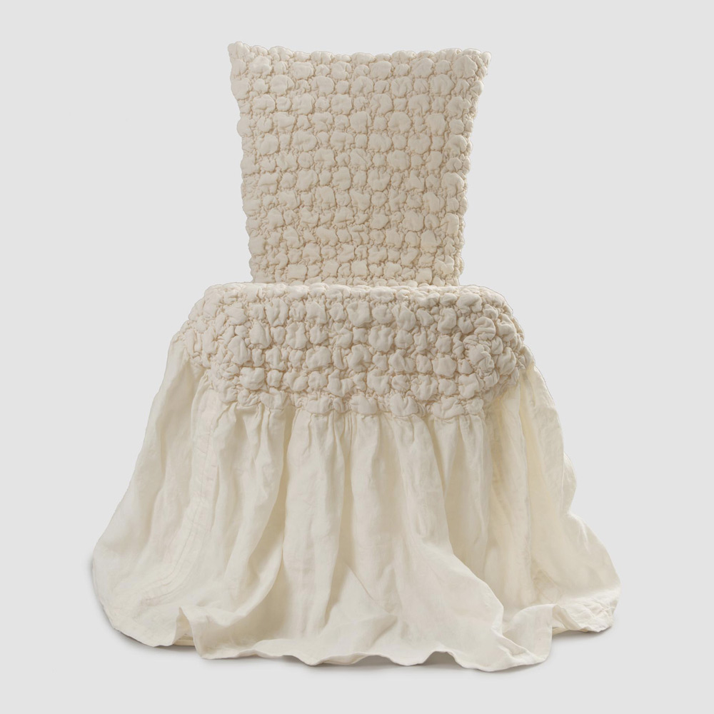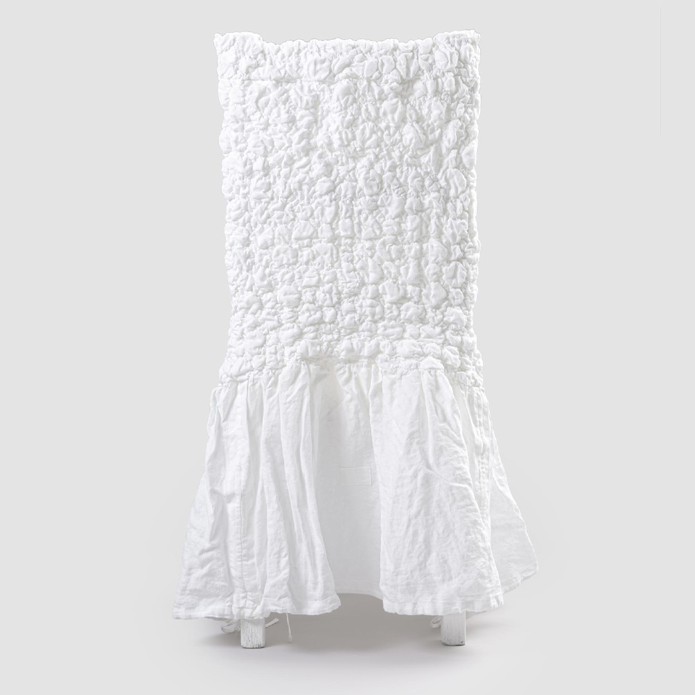 Funda de silla en lino claro gofrado con volante blanco, negro, manteca vieja o mineral viejo made in Italy.