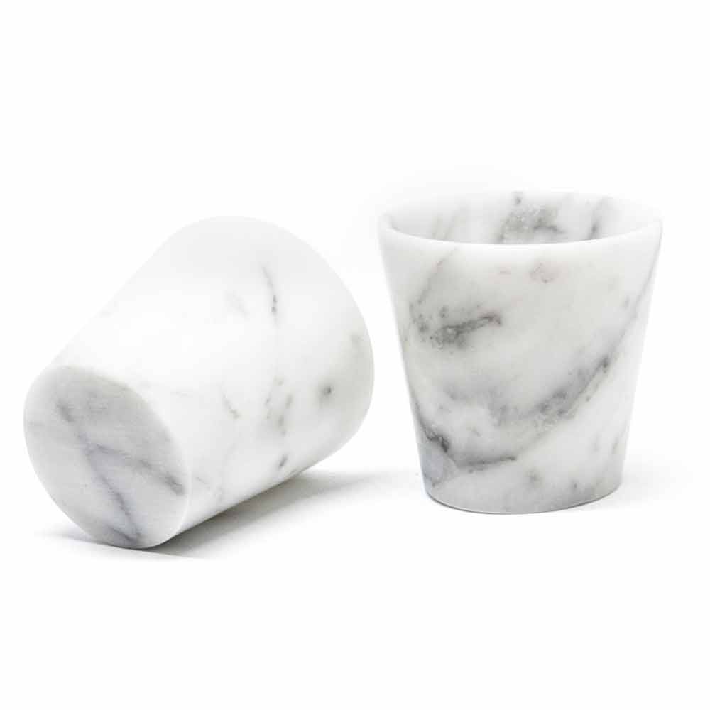 Vaso para grappa en mármol de Carrara blanco satinado íntegramente Made in Italy.