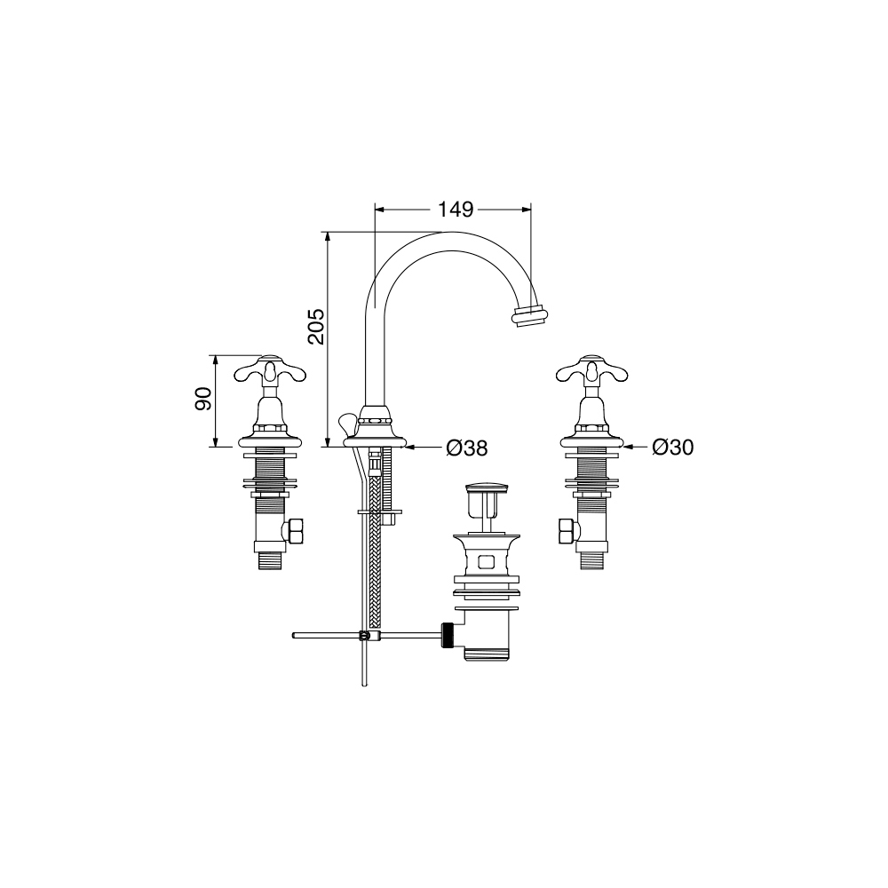 Klarisa è una fina batería de lavabo de caño alto de 3 agujeros con desagüe. .