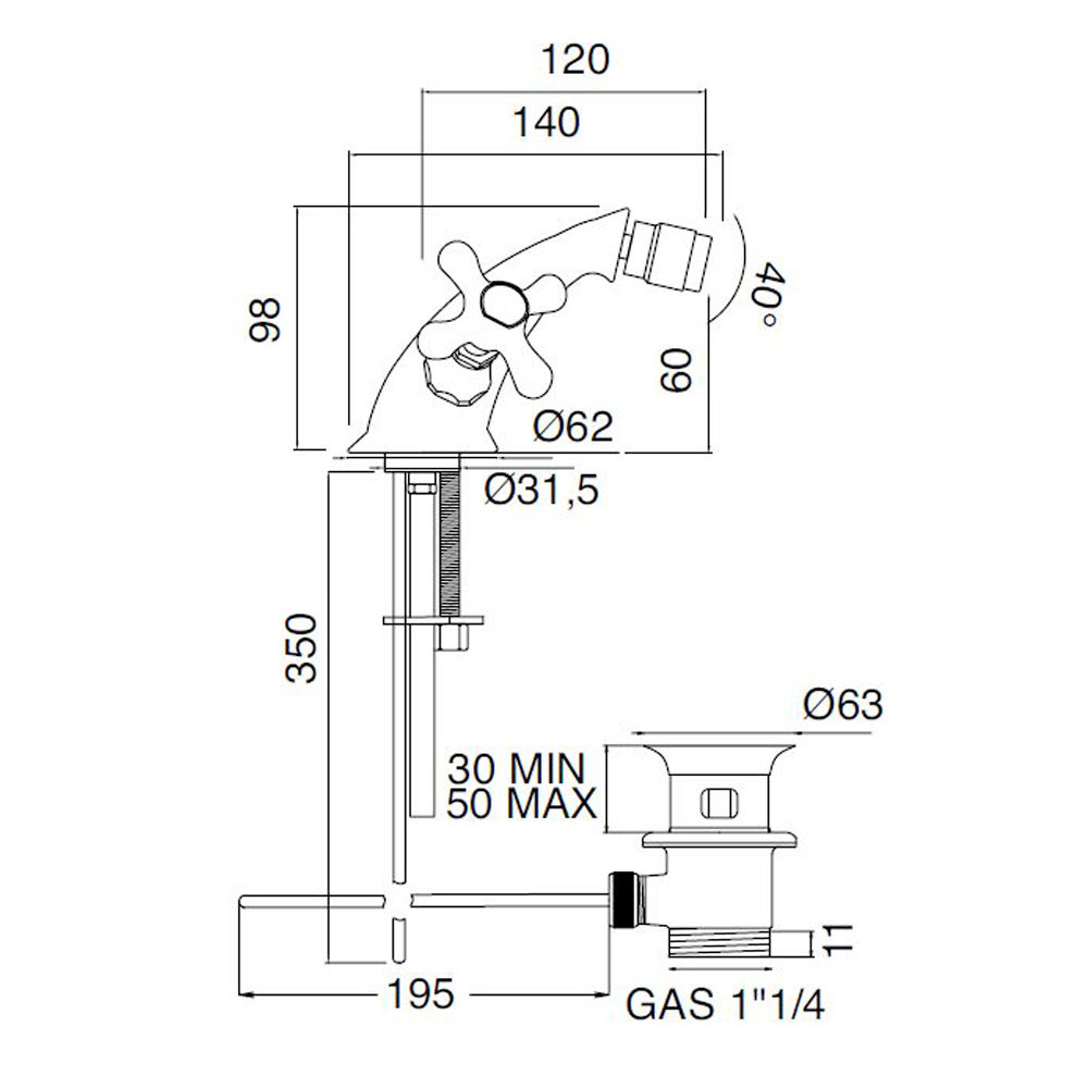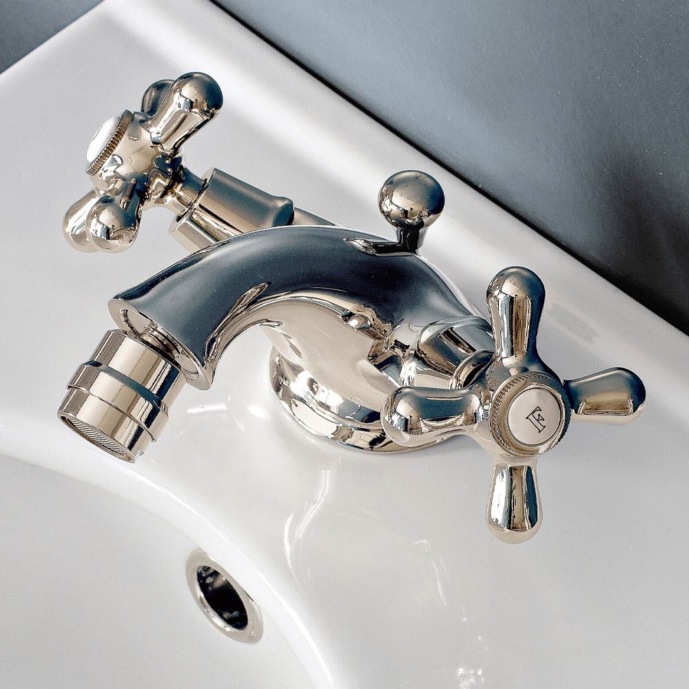 Grifo para bidé de un orificio con desagüe de latón artesanal fabricado en Italia.