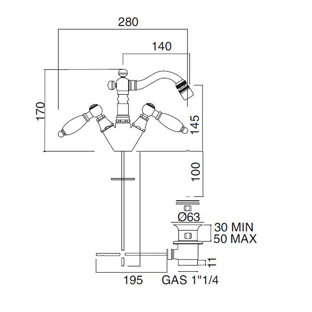 Grifo monomando de latón para bidé, alta calidad made in Italy.