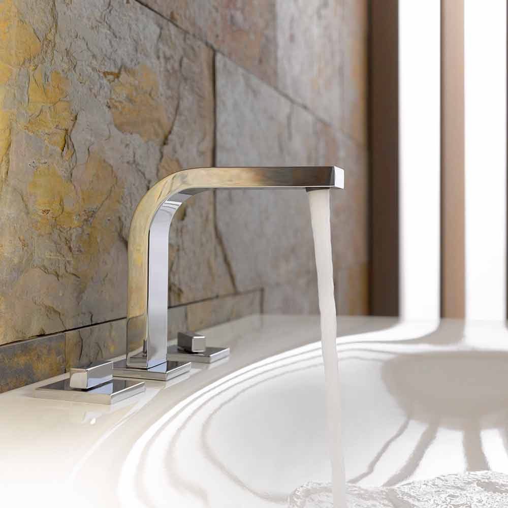 Mezclador monomando para lavabo de baño de 3 orificios fabricado en latón con un diseño moderno.