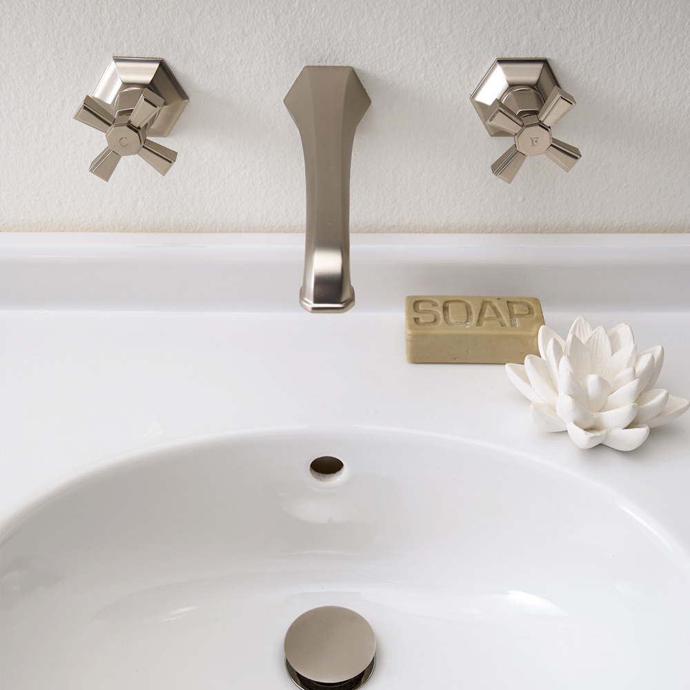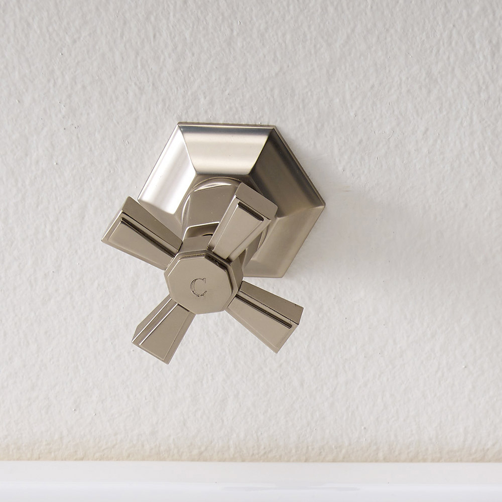 La colección Silvana è se caracteriza por sus formas hexagonales y superficies cuyas facetas reflejan la luz de forma original, iluminando el entorno circundante. El estilo se inspira claramente en el arteDéco. Esta línea de grifería de baño de lujoè ha diseñado para ser combinada con bañeras, lavabos, duchas y bidés de diseño vintage y refinado.