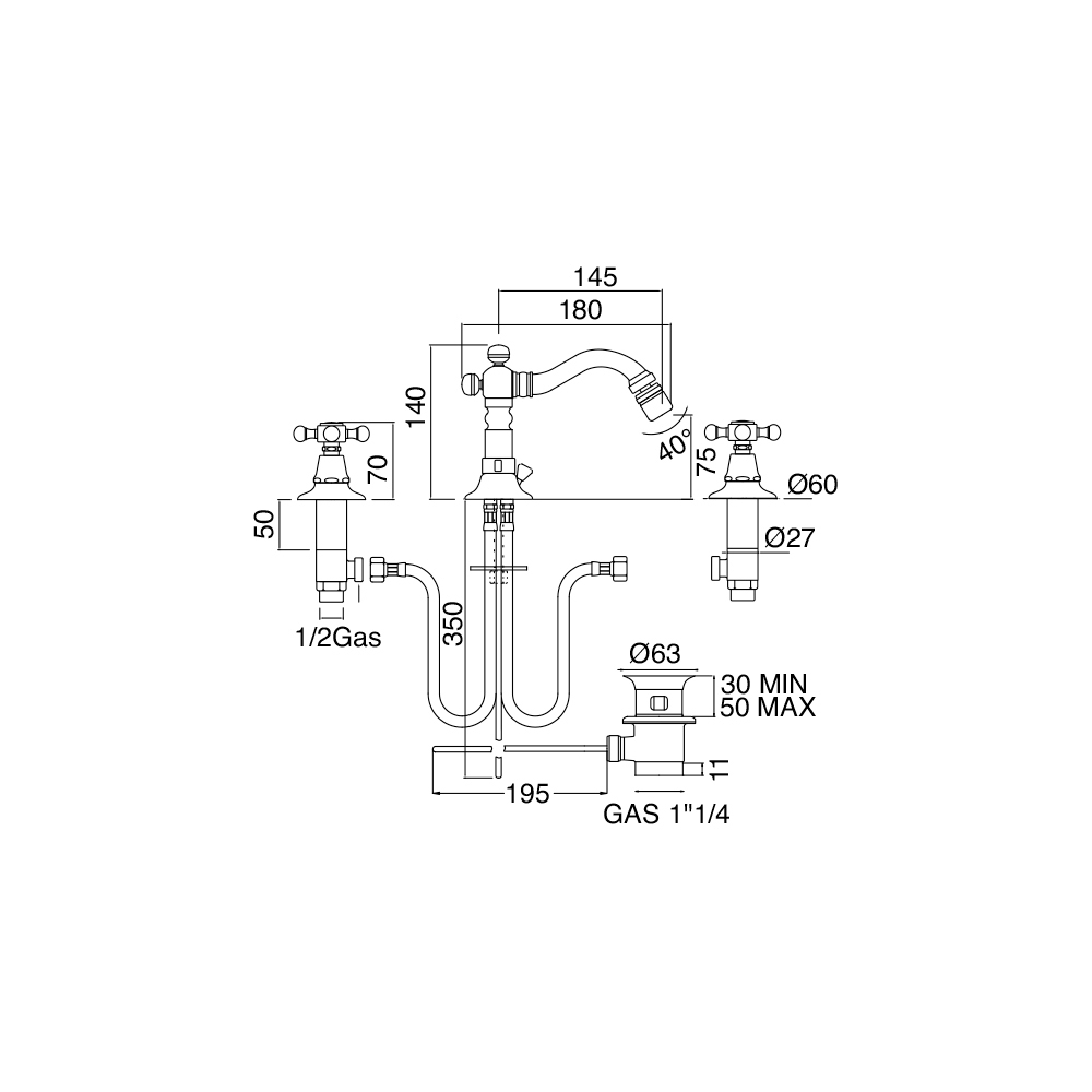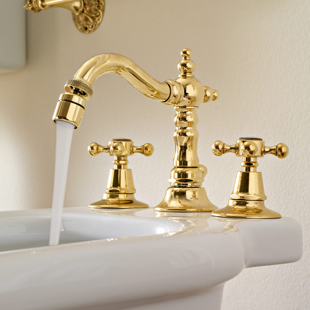 Grifo para bidé de 3 orificios de diseño vintage fabricado en Italia en latón.