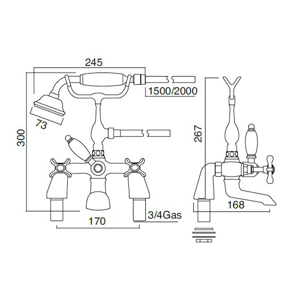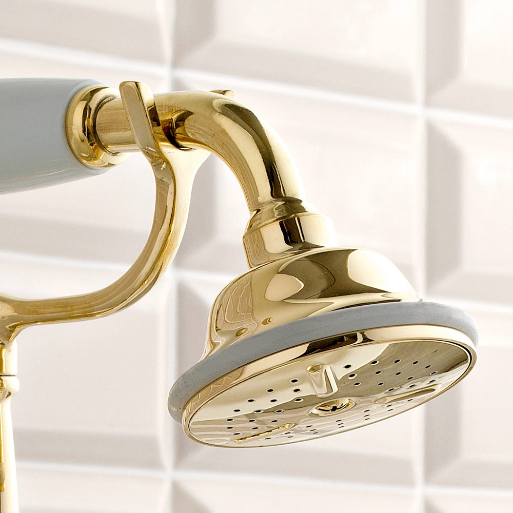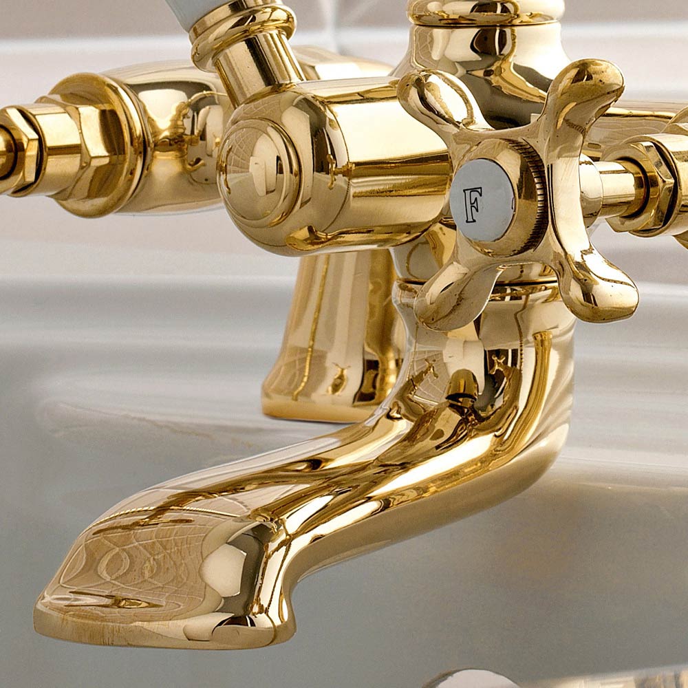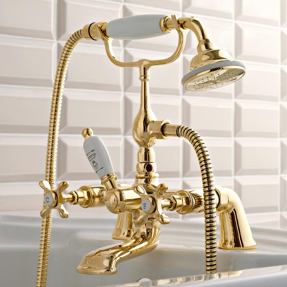 Grifo de borde de bañera clásico de latón artesanal con teleducha, alta calidad made in Italy.