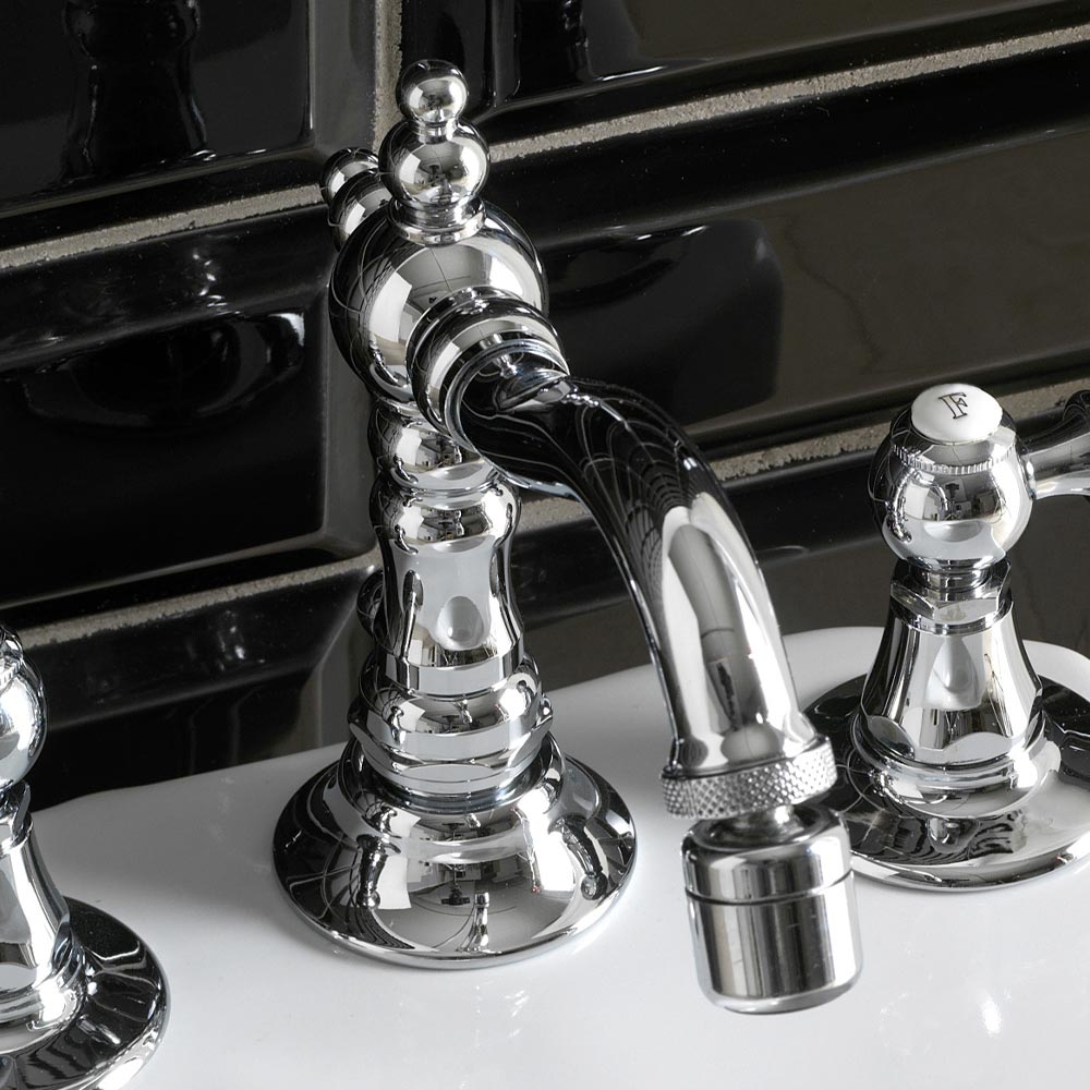 Grifo bidé de 3 orificios con palancas estilo clásico de latón, calidad artesanal made in Italy.
