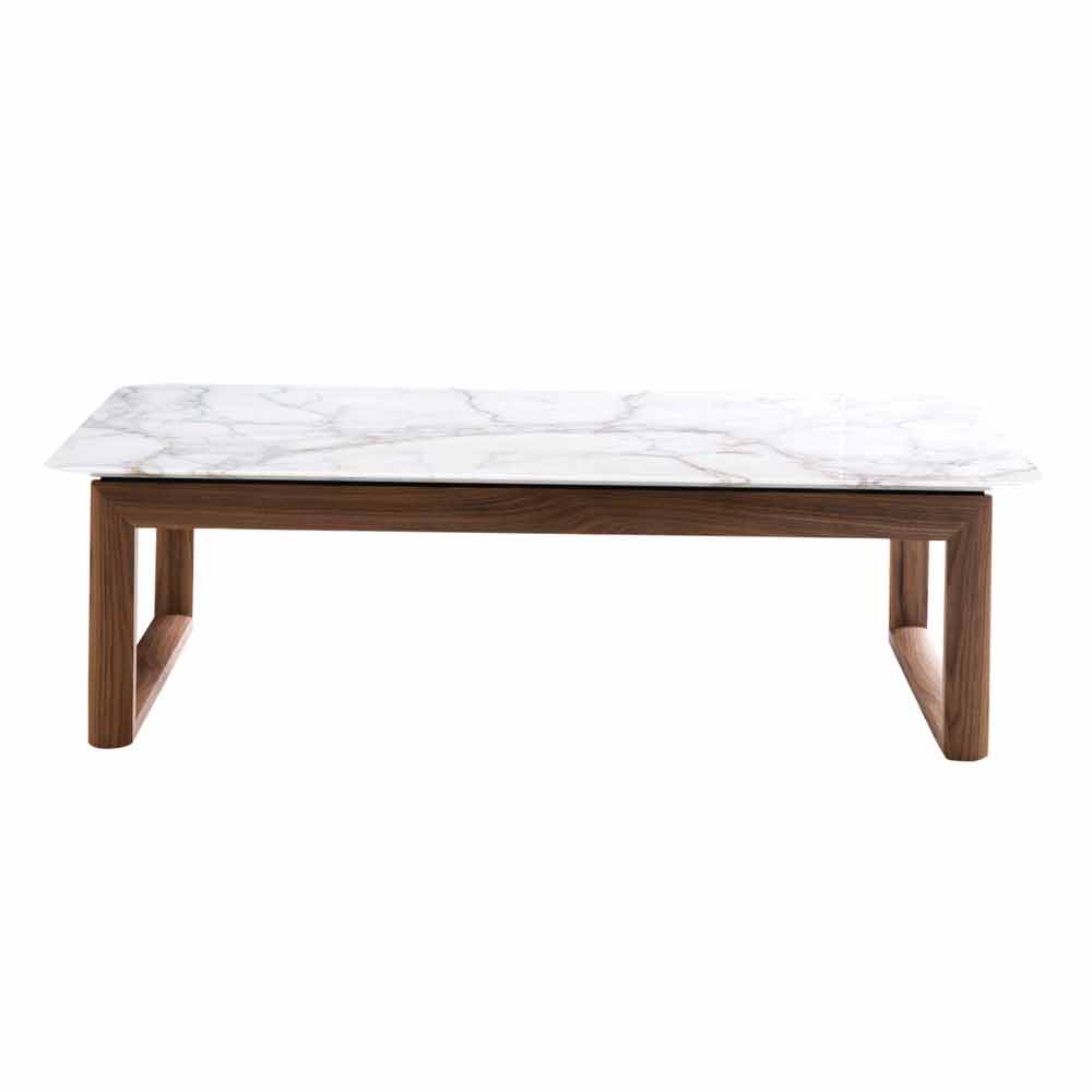 Mesa de centro en madera maciza y diseño de mármol hecho en Italia Grilli York La mesa de centro rectangular tiene un diseño elegante y un carácter fuerte, todas las cualidades que distinguen a York de otras colecciones; Capaz de combinar lo tradicional con lo moderno.