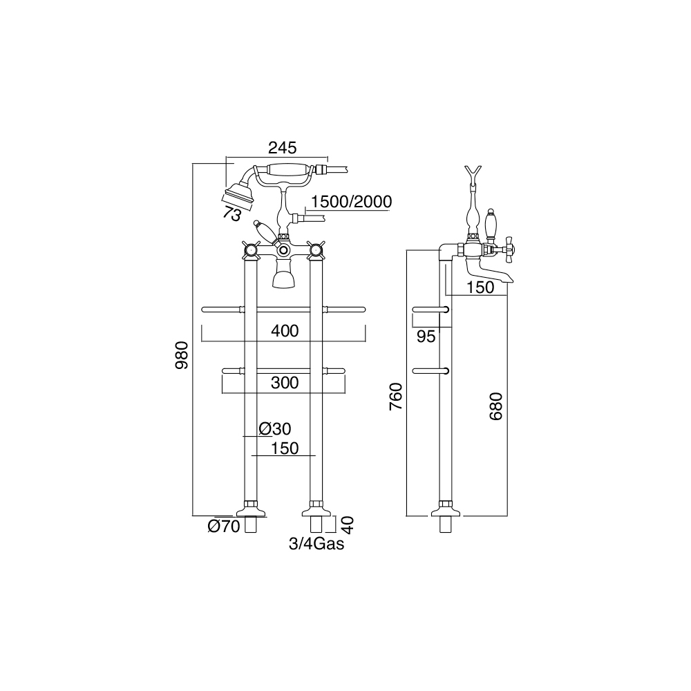 Katerina è un señorial grupo de bañera de piecon toallero, teleducha y flexo.