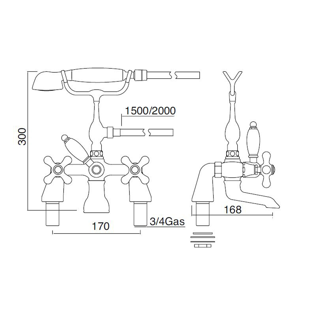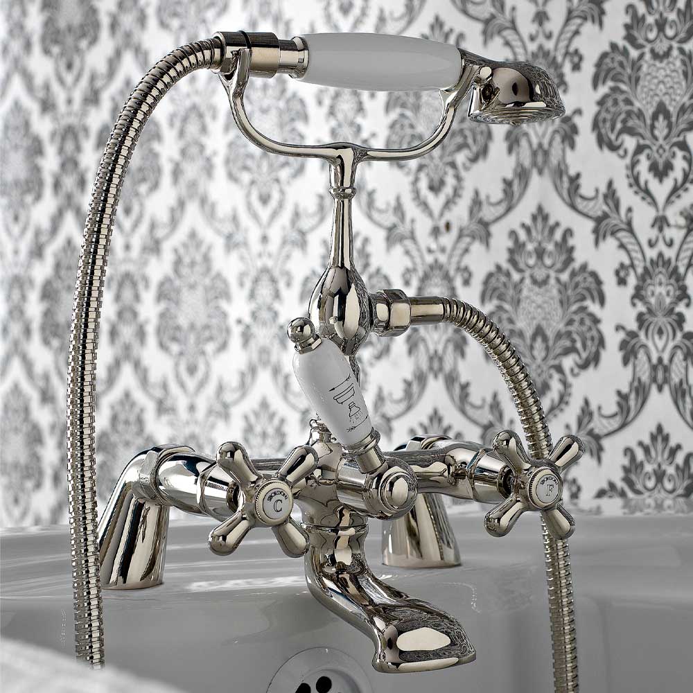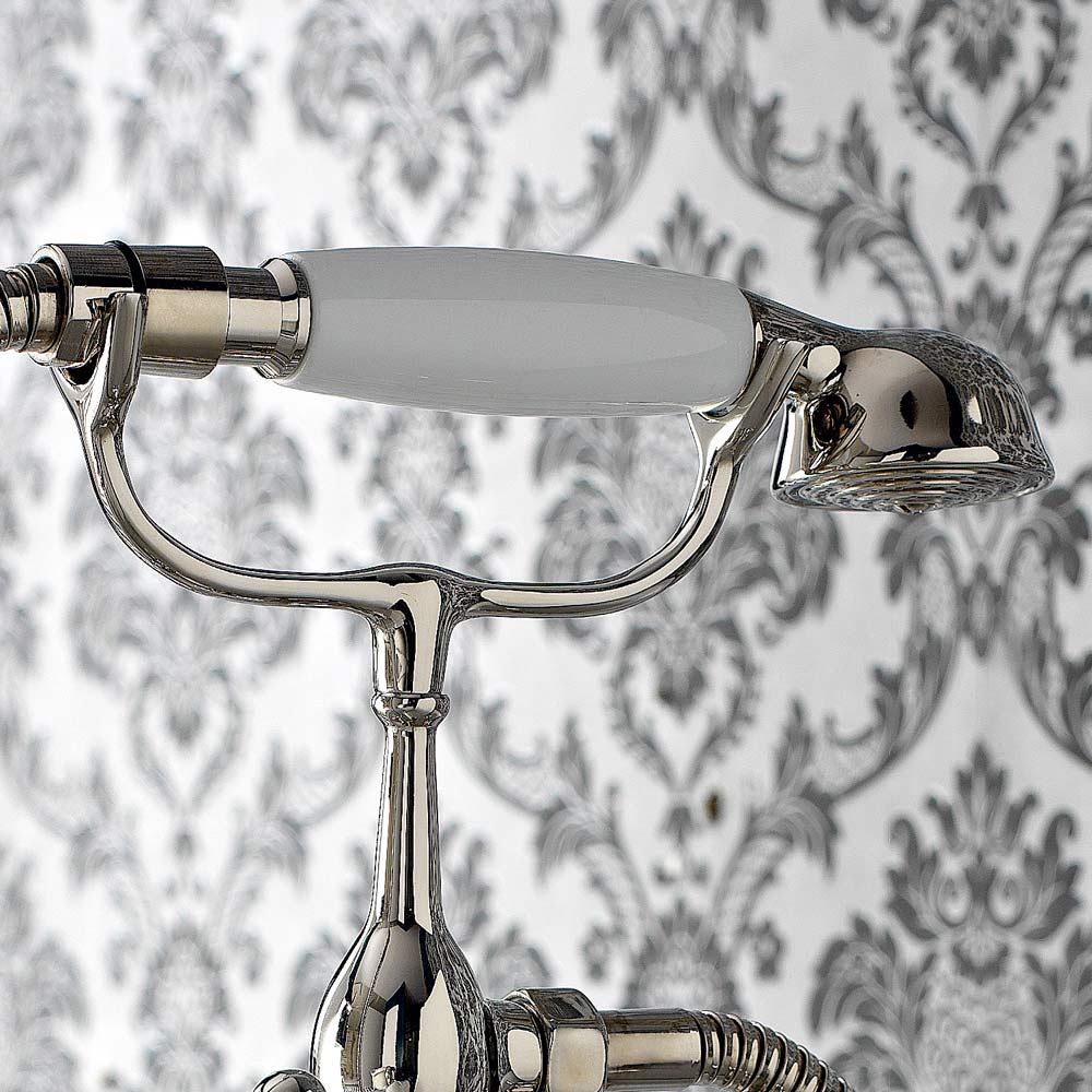 Grifo clásico de borde de bañera con teleducha fabricado artesanalmente en latón made in Italy.