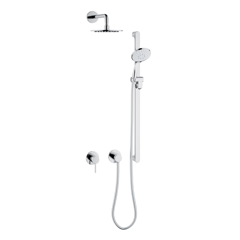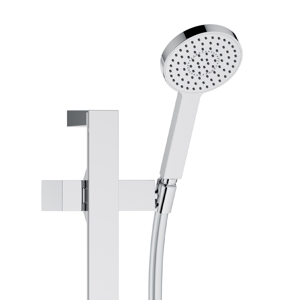 Esta unidad de ducha interior con instalación bidireccional con mezclador monomando, conexión de manguera, soporte de ducha de mano y rociador de ducha tiene un diseño simple y minimalista con opción de rosetón redondo o cuadrado y está fabricado íntegramente en latón cromado . El resultado es un pequeño módulo caracterizado por un concentrado inteligente de tecnología innovadora en un diseño radical y minimalista: el mezclador y la conexión de la manguera están conectados de una manera única para un mínimo esfuerzo de instalación y el máximo confort funcional.