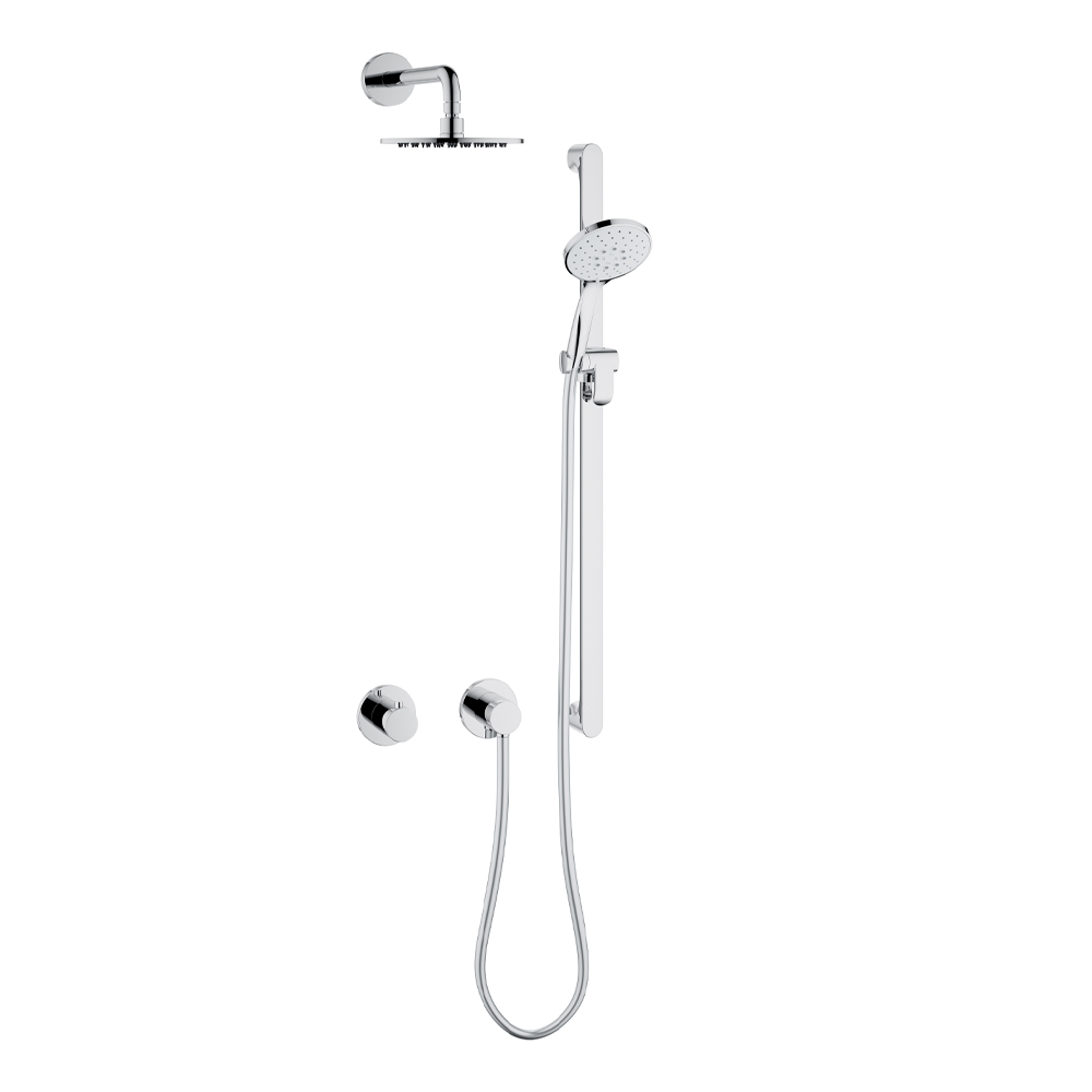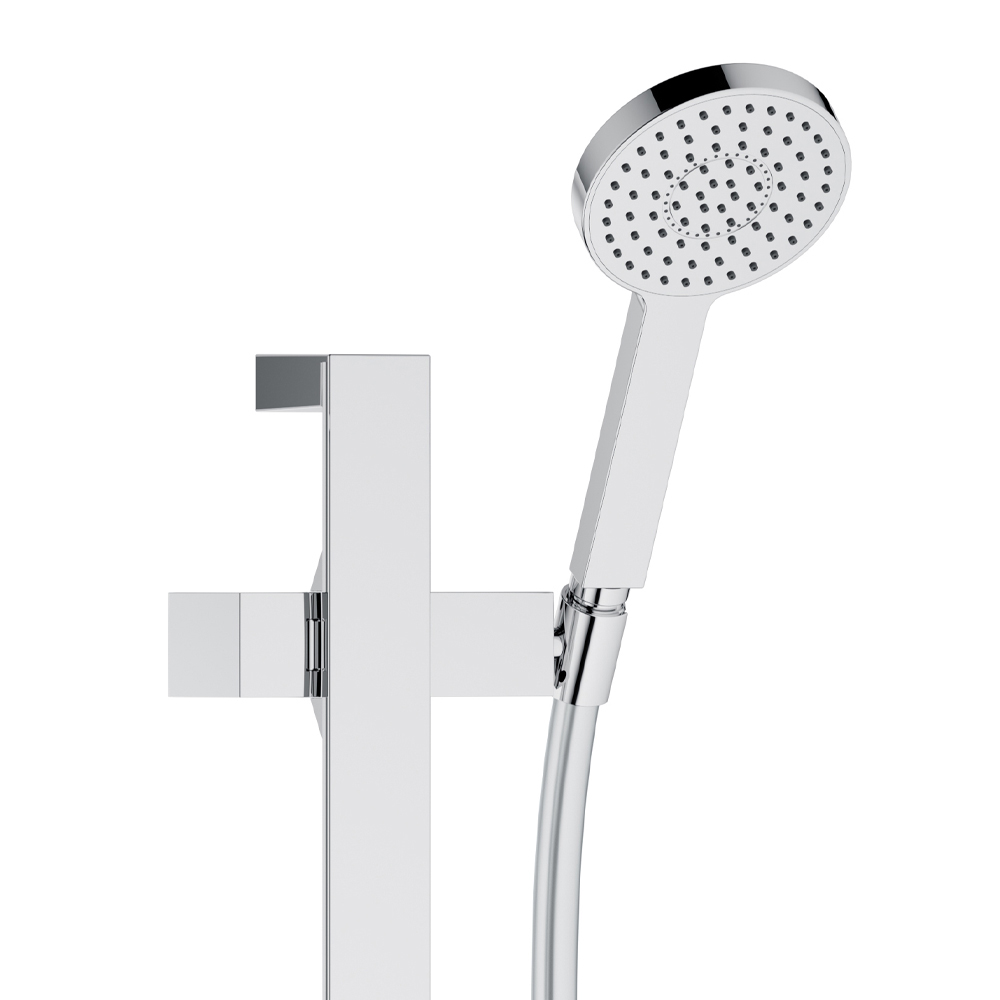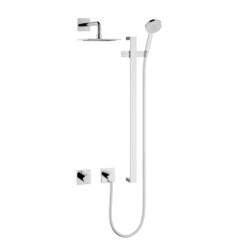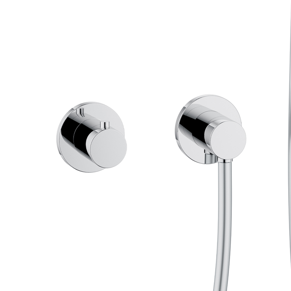 Esta unidad de ducha interior con instalación bidireccional con mezclador monomando, conexión de manguera, soporte de ducha de mano y rociador de ducha tiene un diseño simple y minimalista con opción de rosetón redondo o cuadrado y está fabricado íntegramente en latón cromado . El resultado es un pequeño módulo caracterizado por un concentrado inteligente de tecnología innovadora en un diseño radical y minimalista: el mezclador y la conexión de la manguera están conectados de una manera única para un mínimo esfuerzo de instalación y el máximo confort funcional.