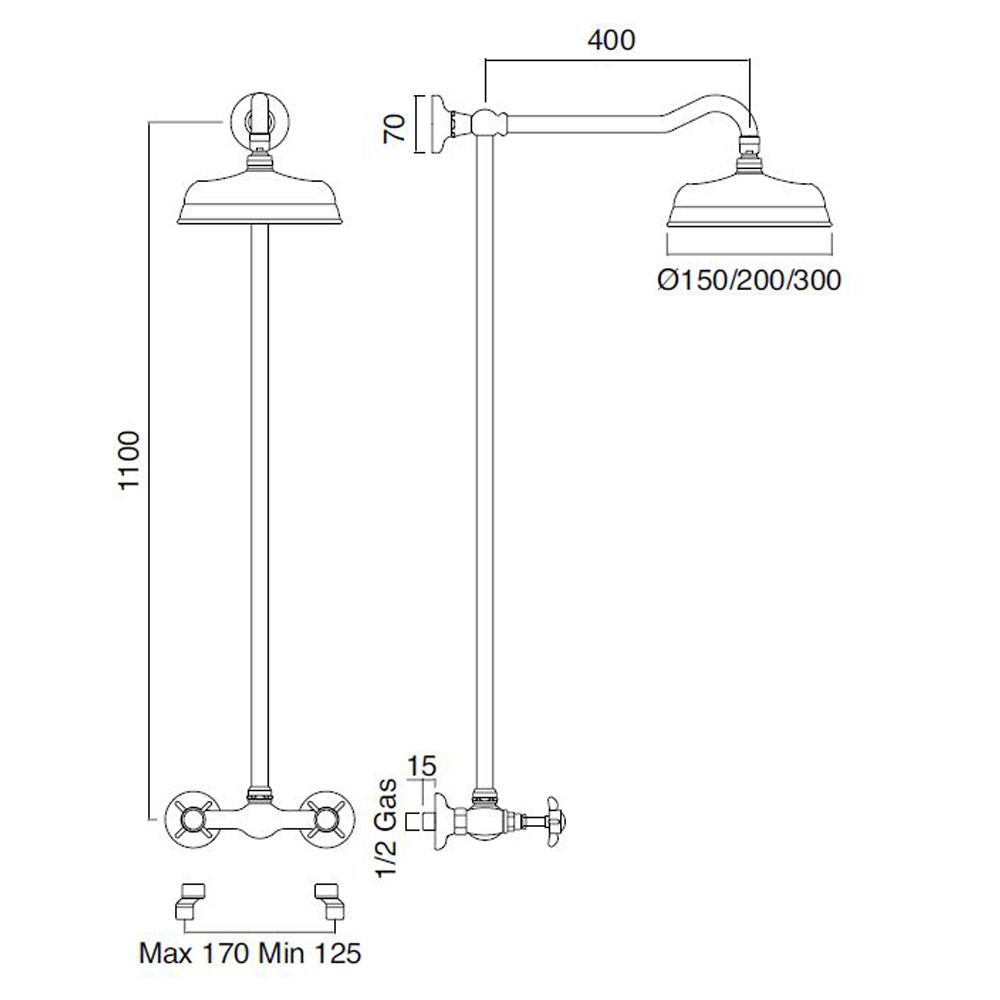 Regleta de ducha mural fabricada artesanalmente en latón estilo clásico made in Italy.
