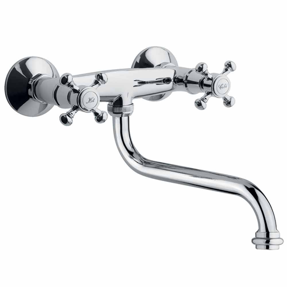 Grupo de lavabo de pared con caño regulable en latón Made in Italy.
