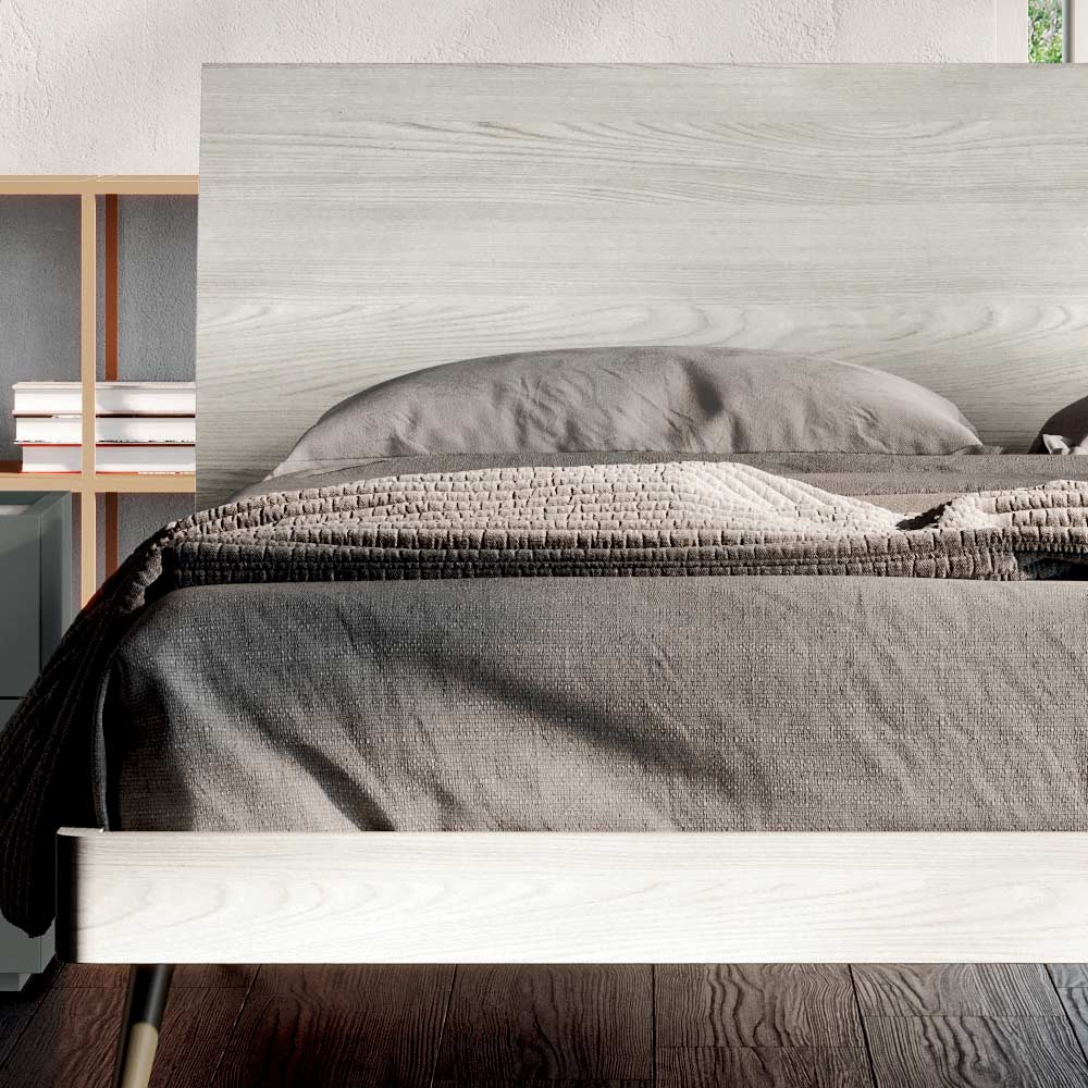 y la cabecera en madera texturizado blanqueado y pies