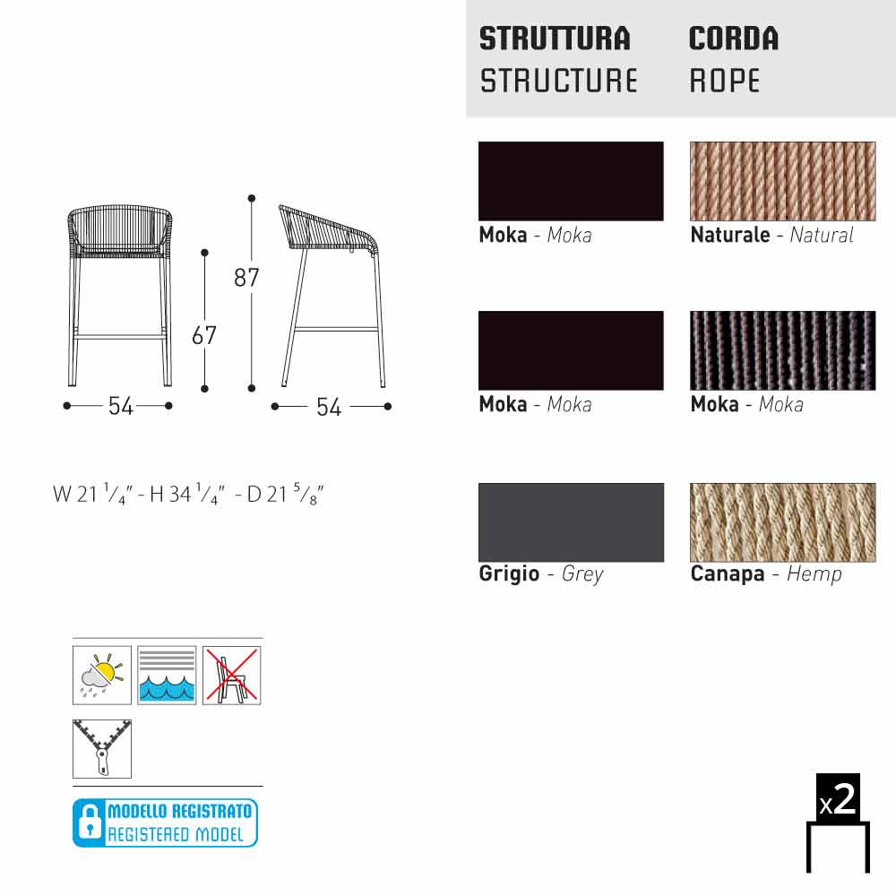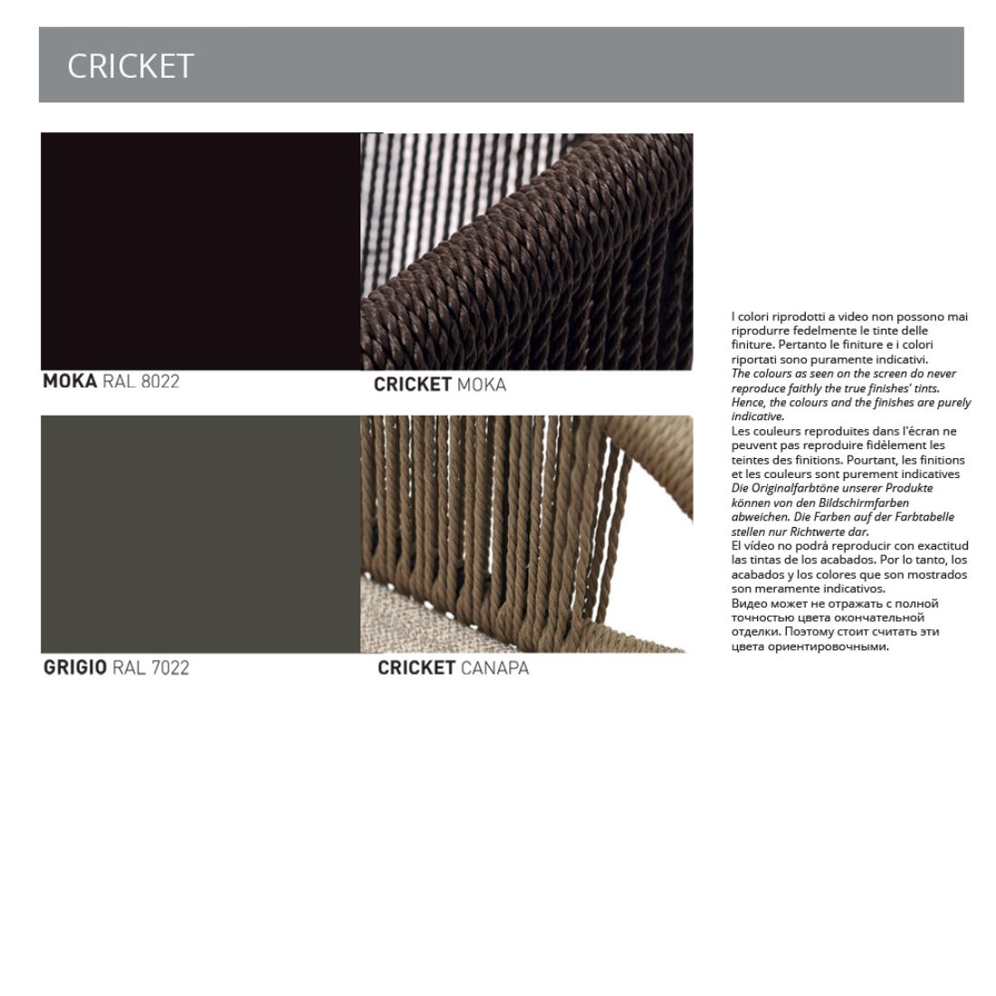 Conjunto que consiste en 2 taburetes de fibras sintéticas tejidas a mano con marco de aluminio pintado. El grillo heces por Varaschin se puede utilizar al aire libre, sino también para amueblar ambientes interiores.