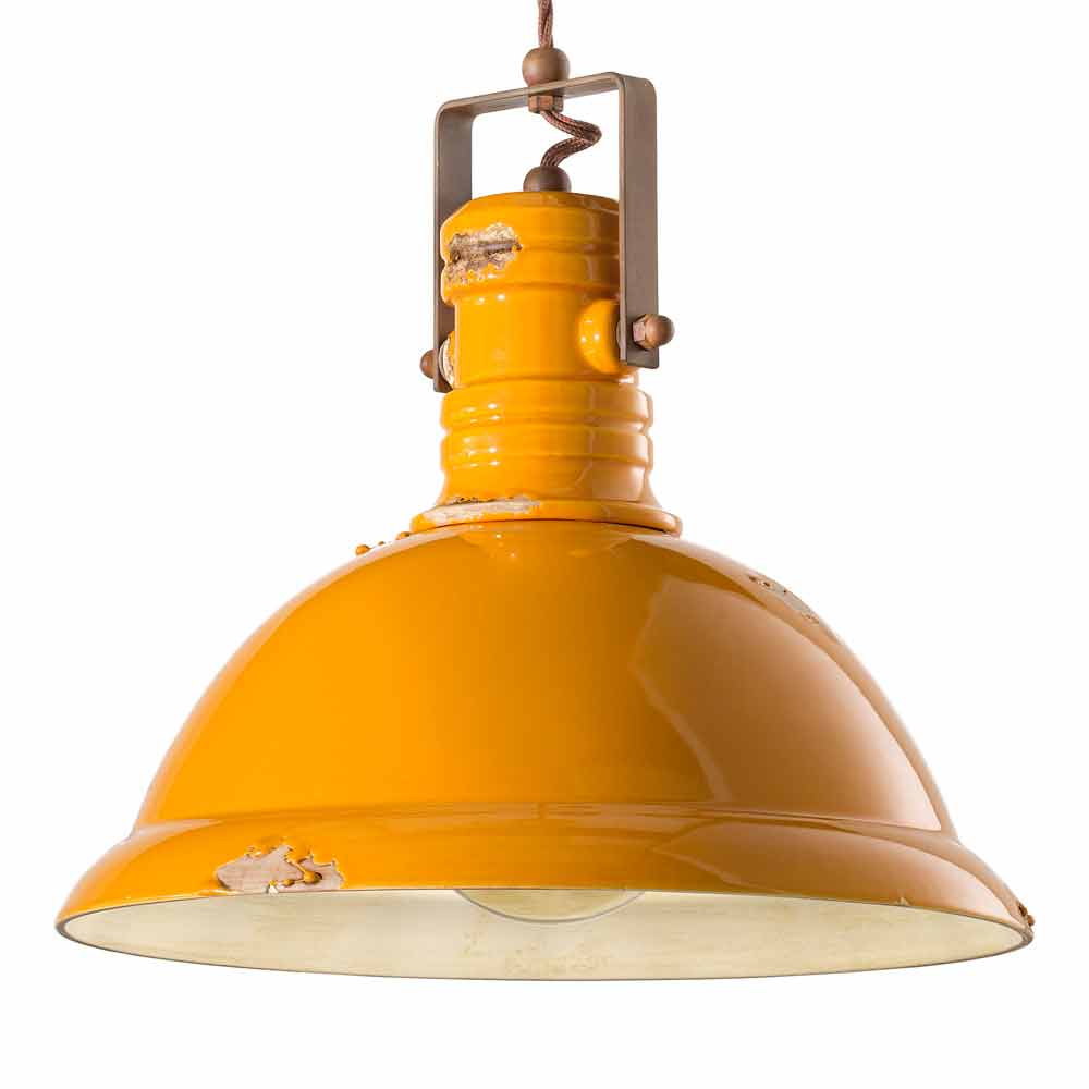 Campana colgante industrial de cerámica y metal Ruth Ruth es una fantástica suspensión, con forma de campana y estilo vintage-industrial, hecha a mano por expertos artesanos en Italia. Esta preciosa lámpara consta de una estructura de hierro con un difusor realizado en cerámica brillo, disponible en diferentes colores. La peculiaridad de esta lámpara radica en la elaboración artesanal del difusor cerámico. La cerámica, de hecho, está decorada como si el tiempo hubiera marcado su camino. La reproducción de la erosión del tiempo combinada con las superficies brillantes le dan ese valor extra a esta suspensión. Este efecto desgastado le da a Ruth un sofisticado estilo vintage-industrial. La estructura de metal amplifica aún más el efecto antiguo. Colores vivos, superficies brillantes y refinados signos de la edad para un perfil actual disfrazado de estilo pasado. Ideal para decorar una casa de campo de estilo inglés. Esta suspensión creada para ambientes con un ambiente envolvente es capaz de satisfacer las solicitudes más exigentes gracias a un diseño único y original. Un diseño que se opone al lujo pero que convive armónicamente con él. Diseño que preserva la esencialidad del uso y tranquiliza con un delicado equilibrio entre formas y tonos. Ruth crea luz pura, sin pantallas. Son estas formas sencillas y delicadas las que llaman la atención, y que hacen que Ruth sea capaz de adaptarse a cualquier decoración, desde la más sencilla y minimalista hasta la más clásica, creando un delicado contraste. ¡Dale un toque de diseño también a tu hogar! ¡Pequeños detalles para un gran efecto con sabor antiguo! Lámpara disponible en diferentes acabados. ¡Consulta la carta de colores e introduce el código del acabado que deseas en la casilla correspondiente!