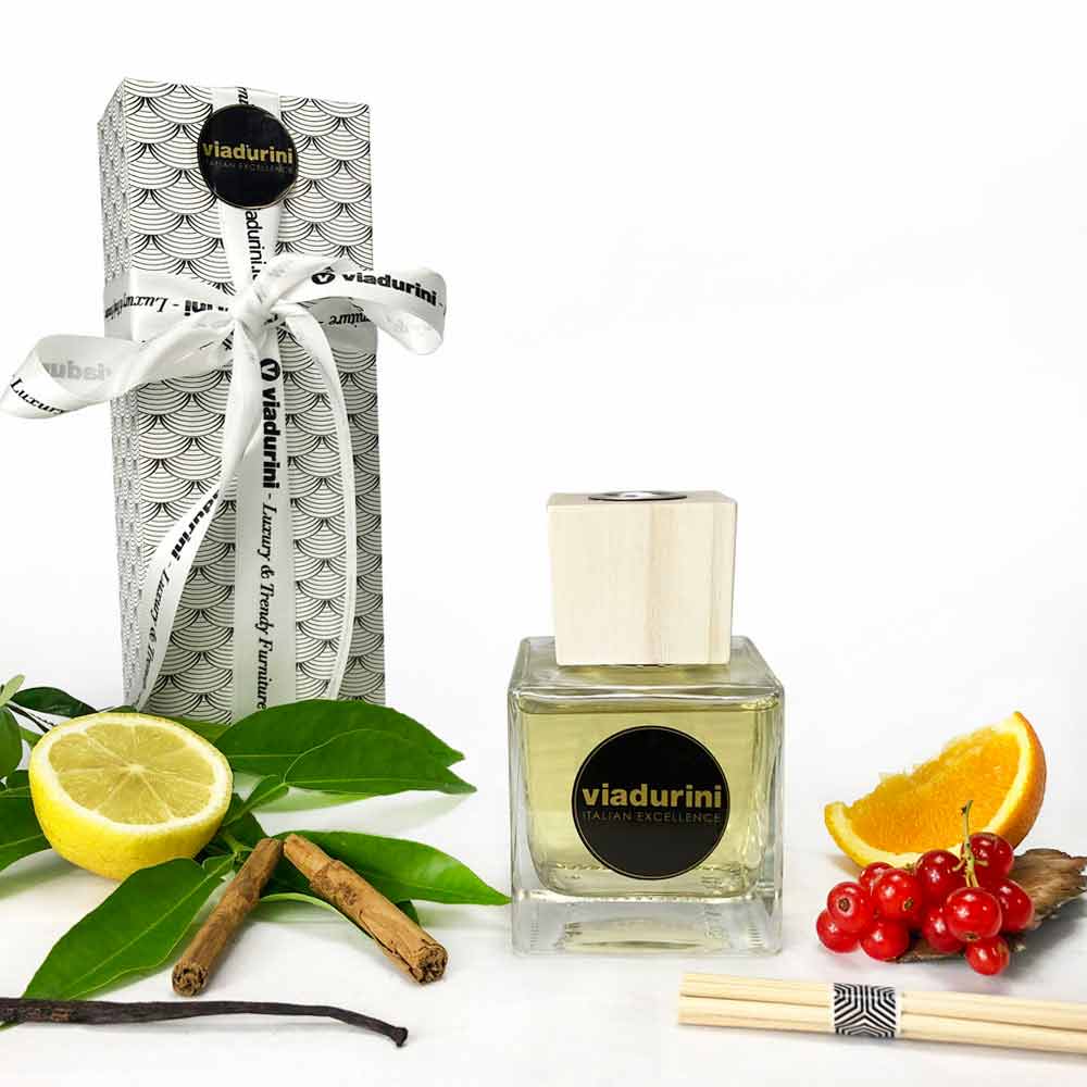 Difusor de caña fragancia afrutada de mandarina y canela con varillas - Esencia Made in Italy.