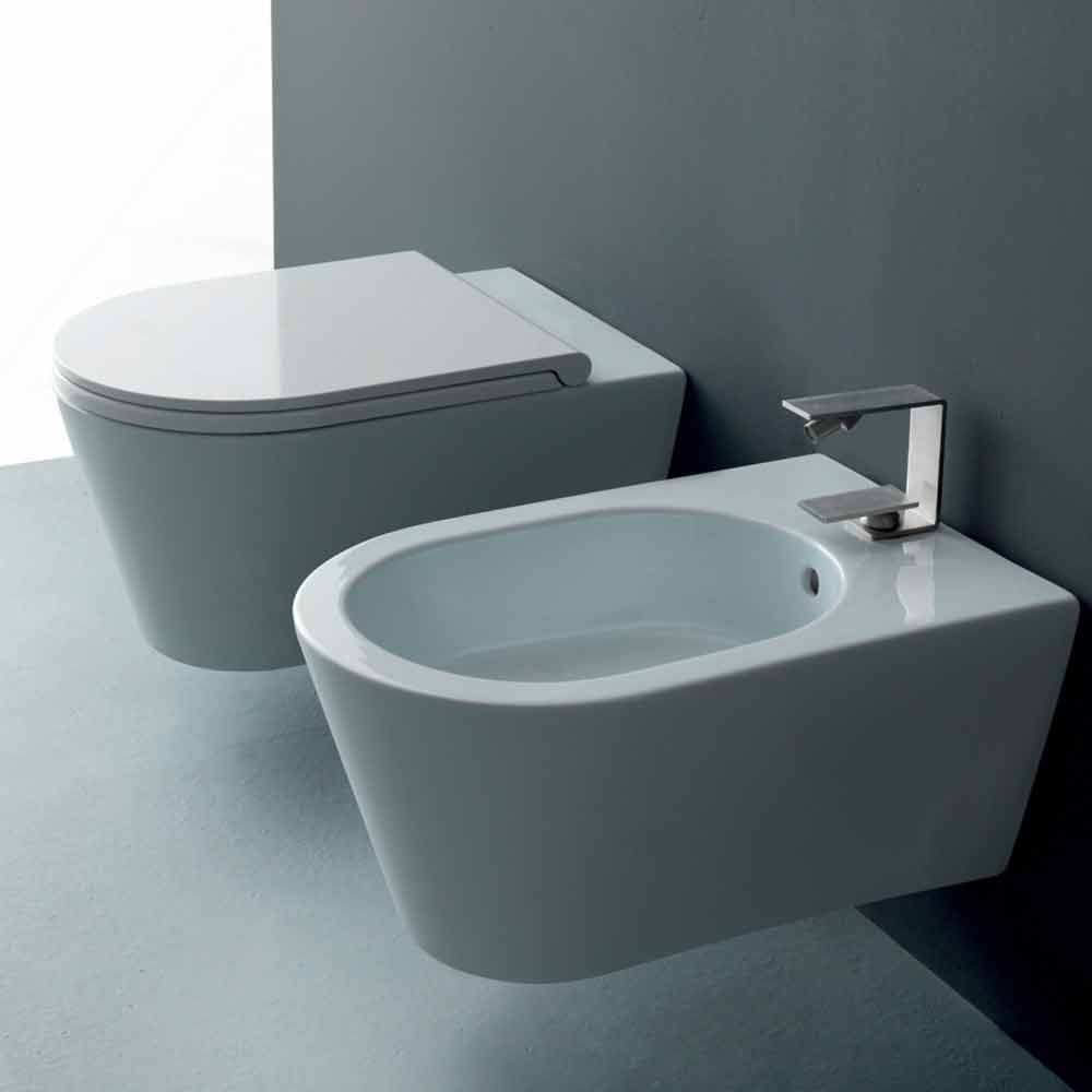 Inodoro suspendido de cerámica moderno Sun Round 57x37 cm, hecho en Italia Inodoro cerámico suspendido con soportes de fijación y fijación rápida incluidos. Opciones Disponibles: - asiento blanco con bisagras cromadas - asiento con bisagras cromadas amortiguadas de cierre suave