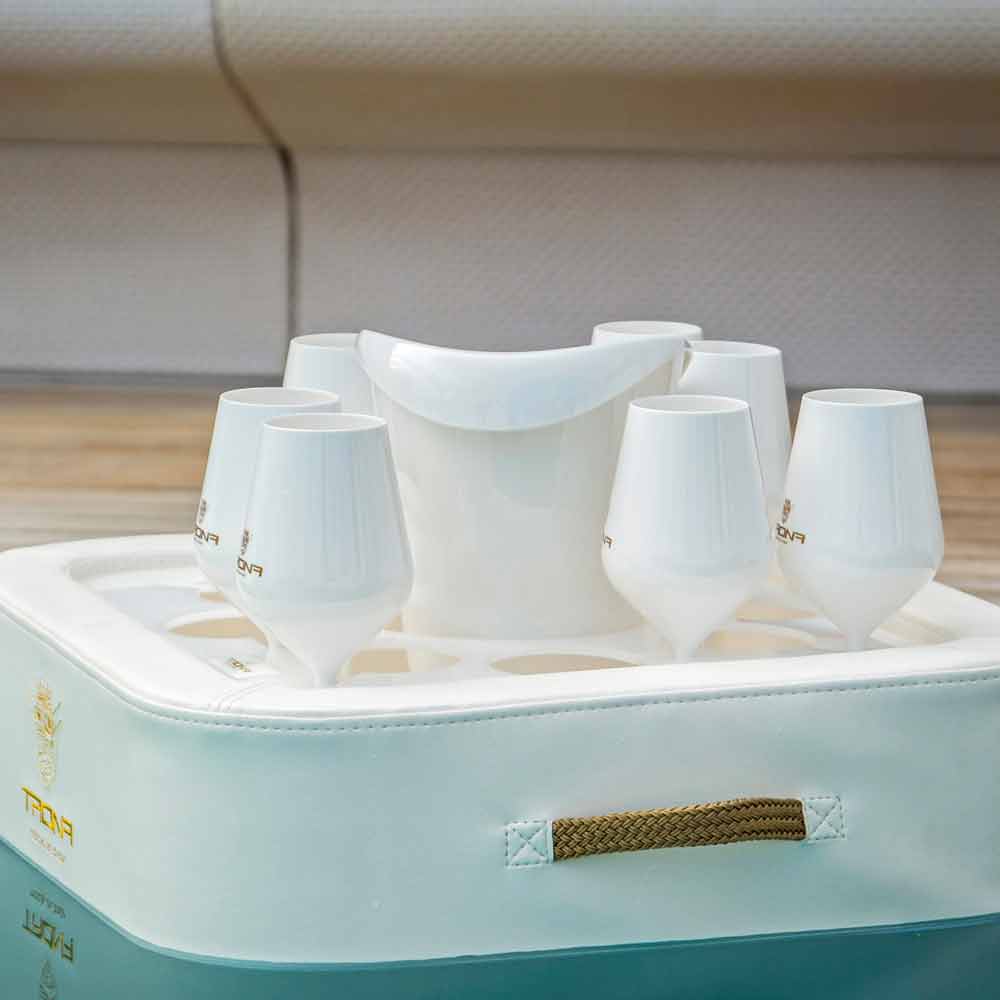 Trona se completa con un cubo de hielo y un juego de 8 vasos de policarbonato.