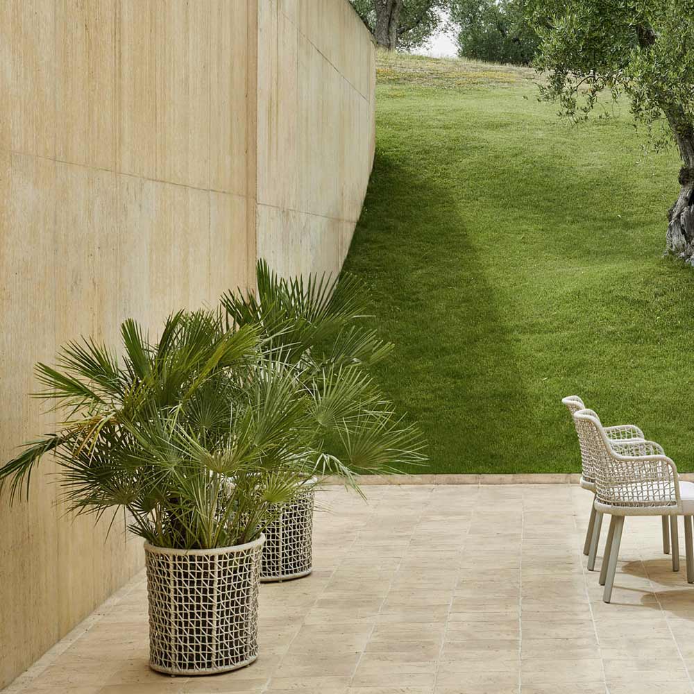 Jardinera de exterior con platillo compuesta por una estructura de aluminiopintado en polvo y cuerda trenzada a manocon acabado beige . Caracterizado por un diseño esencial , este producto está concebido y diseñado para representar una solución práctica y al mismo tiempo enriquecer cualquier espacio exterior con un toque de personalidad moderna y refinada .