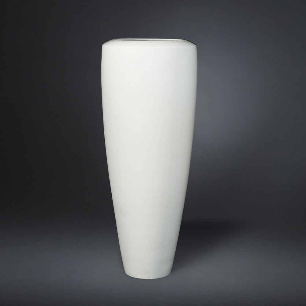 Jarrón decorativo alto en cerámica blanca mate hecha a mano Made in Italy.