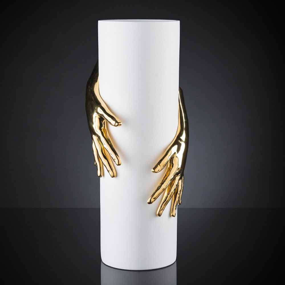 Jarrón ornamental de interior en cerámica coloreada hecho a mano en Italia. Un diseño que surge de la unión de líneas simples y minimalistas con elementos excéntricos extrapolados de obras de arte de la cultura italiana, dando vida así a accesorios decorativos originales cuya calidad y valor se enfatiza por el uso de la cerámica y la producción artesanal para un resultado. capaz de adaptarse a cualquier situación estilística. Una estética ideal para los más variados ambientes, desde el mobiliario del hogar hasta el de hoteles, restaurantes, espacios contract, spas pero también como escenario para eventos y bodas.