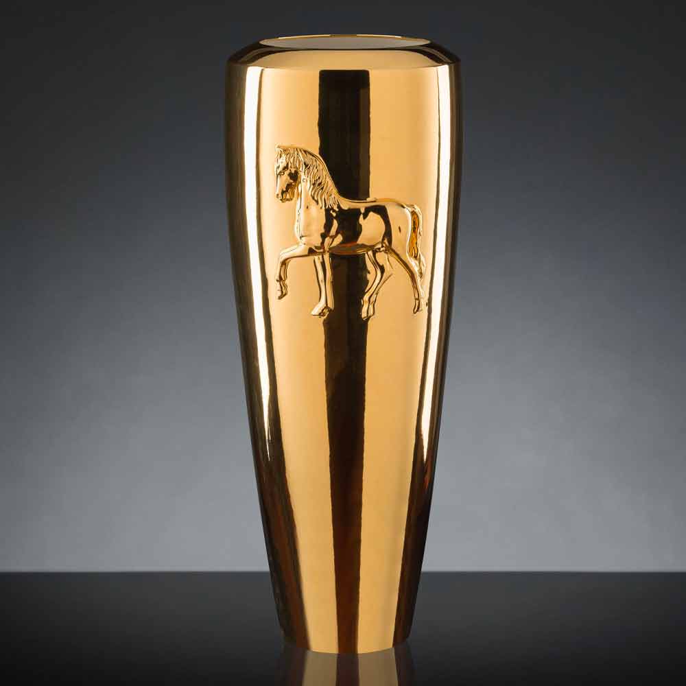 Jarrón ornamental alto de cerámica con acabado en oro brillante de 24kHecho a mano en Italia por artesanos expertos en el sector durante generaciones. Un mueble único cuya estructura está marcada por formas simples enriquecidas por la decoración frontal que enfatiza su singularidad. El color particular elegido también lo hace extremadamente elegante, capaz de completar con personalidad el mobiliario circundante. El uso de la cerámica y la artesanía aumentan su valor y valor para dar vida a un resultado exclusivo y de alta calidad . Un diseño ideal para los más variados ambientes, desde el mobiliario del hogar hasta el de hoteles, restaurantes, espacios contract, spas pero también como escenario para eventos y bodas.