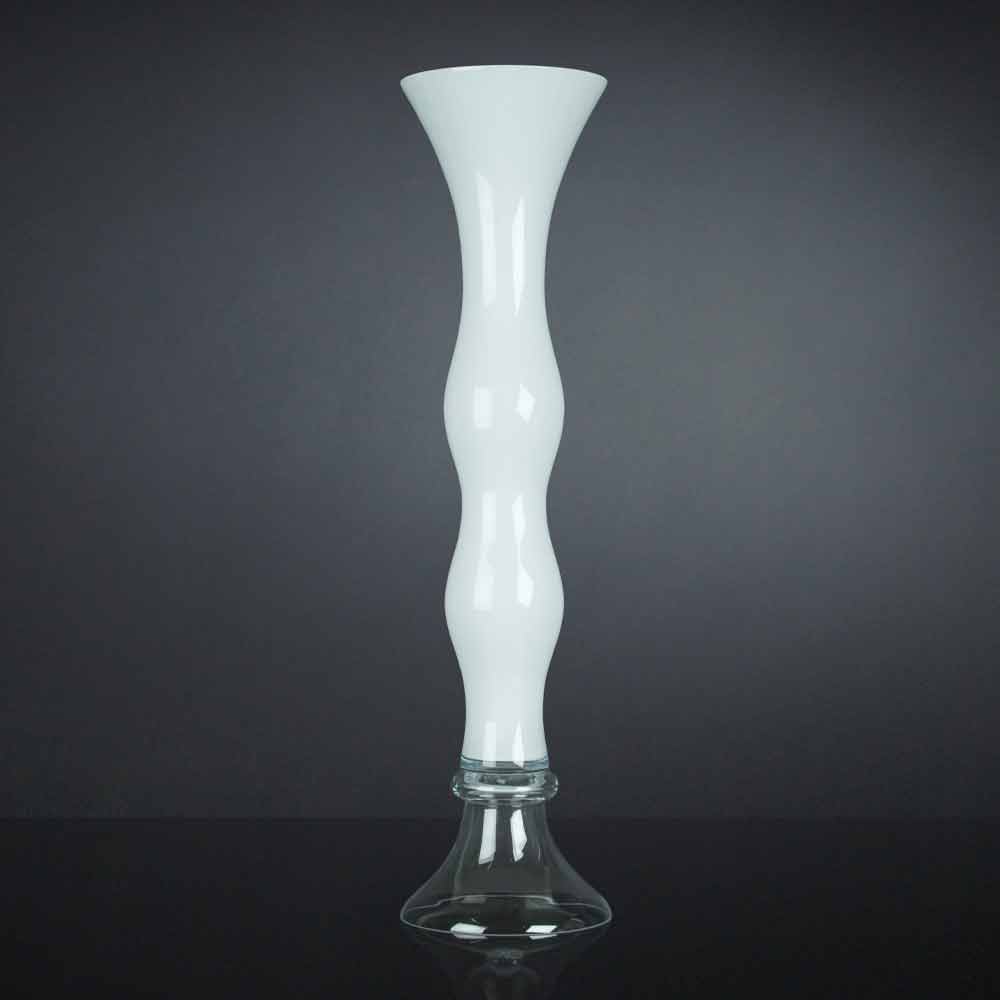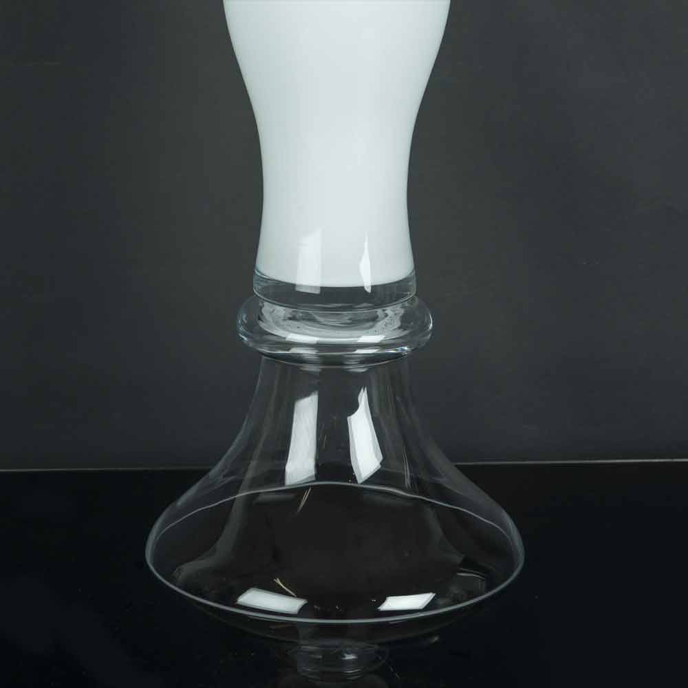 Jarrón decorativo fabricado en vidrio blanco con base transparente mediante un procesamiento 100% Made in Italy . Un refinado complemento cuya estructura se desarrolla en altura proponiendo una figura esbelta de formas suaves perfecta para amueblar y completar ambientes con una estética sofisticada y con clase gracias también a la elegancia atemporal del vidrio, un material de calidad y alto valor . Un diseño ideal para los más variados ambientes, desde el mobiliario del hogar hasta el de hoteles, restaurantes, espacios contract, spas pero también como escenario para eventos y bodas.