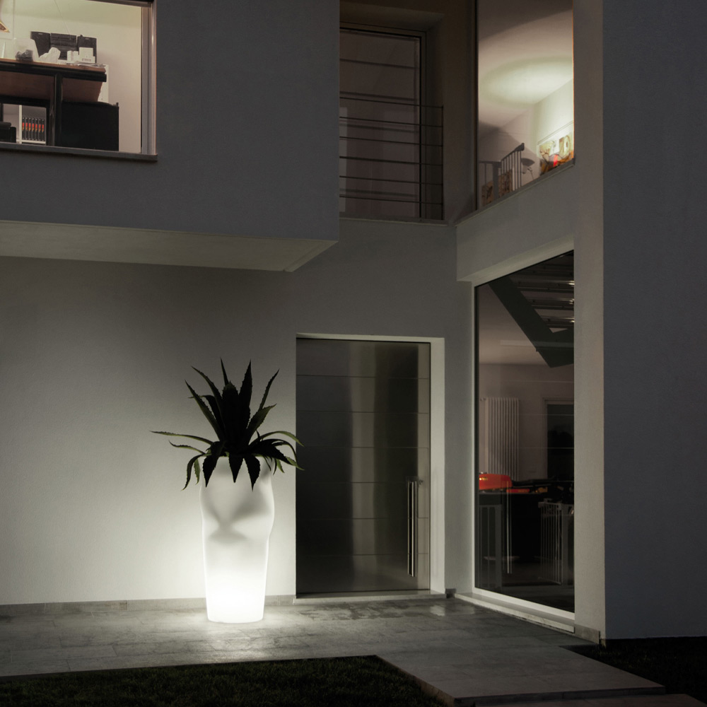 Jarrón luminoso para exterior en polietileno con luz LED Made in Italy.
