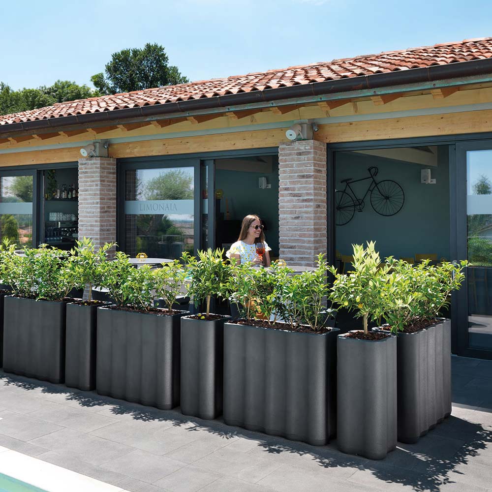 La disponibilidad de 7 colores diferentes y la posibilidad de elegir entre la forma de columna esbelta y la más ancha y espaciosa, hace que este jarrón de exterior sea ideal para delimitar la entrada de su casa, su jardín o la fachada de su casa con un fuerte estilo contemporáneo.