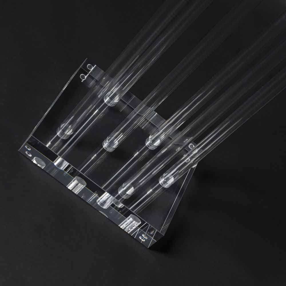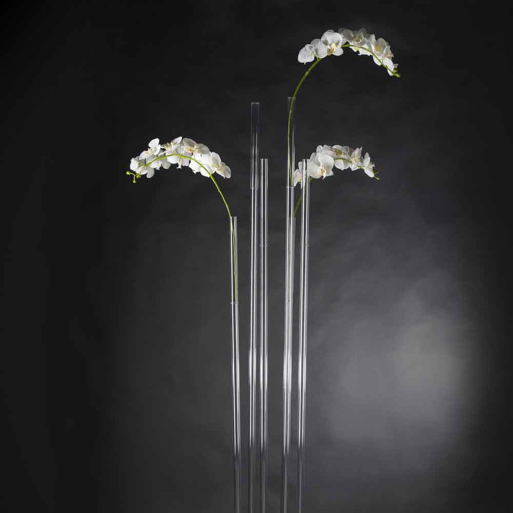 Jarrón decorativo de interior de plexiglás transparente a través de una producción íntegramente Made in Italy . El jarrón incluye una base y 6 tubos de 3 longitudes diferentes. Un diseño extremadamente simple y minimalista ideal para quienes aman un estilo de mobiliario original y creativo pero a la vez sobrio y elegante, logrando así enriquecer la estética del entorno circundante con un toque exclusivo y refinado . Un estilo ideal para los más variados ambientes, desde el mobiliario del hogar hasta el de hoteles, restaurantes, espacios contract, spas pero también como escenario para eventos y bodas.