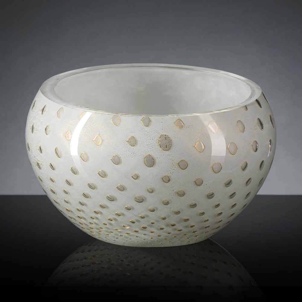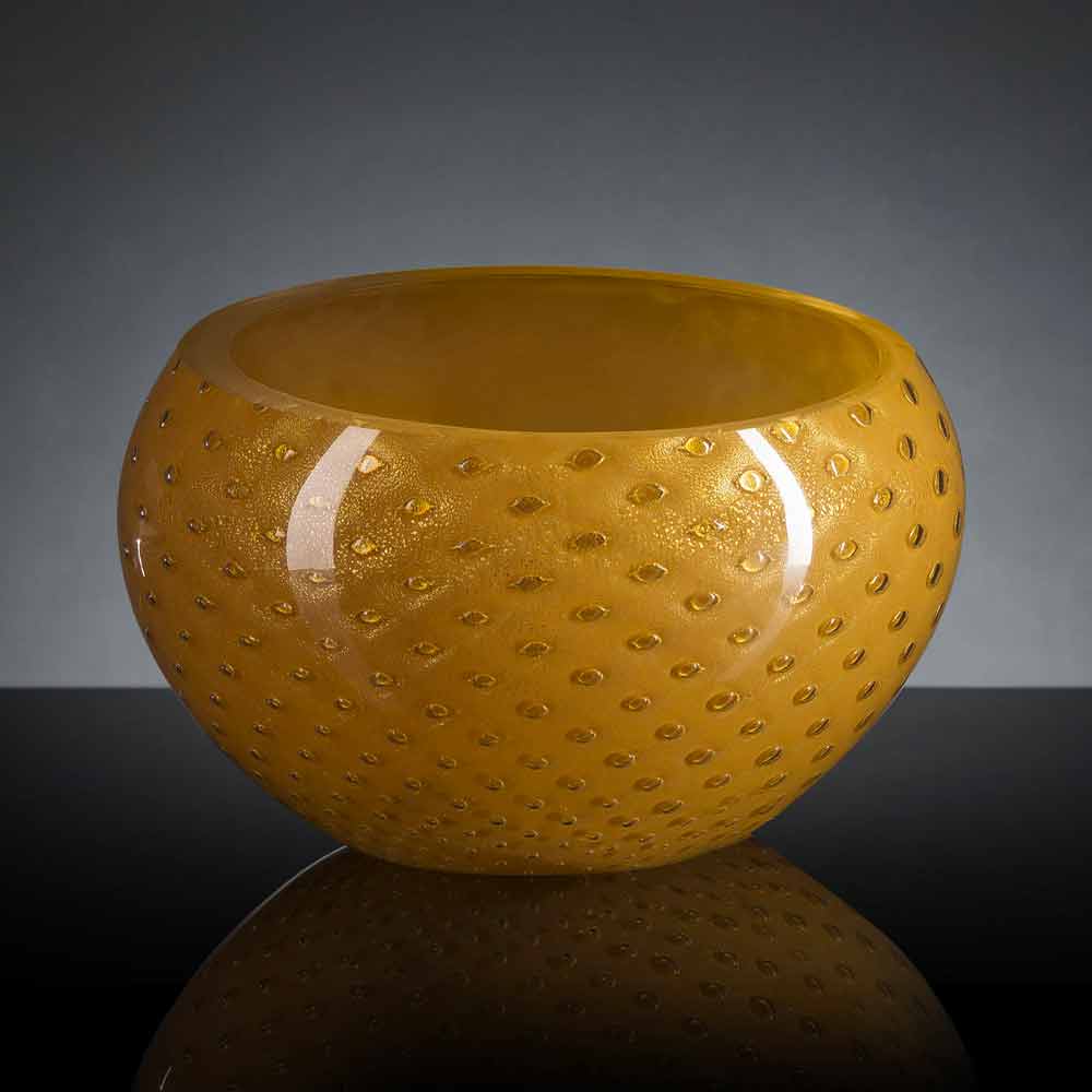 Jarrón de interior redondo en vidrio soplado de Murano de color Made in Italy.