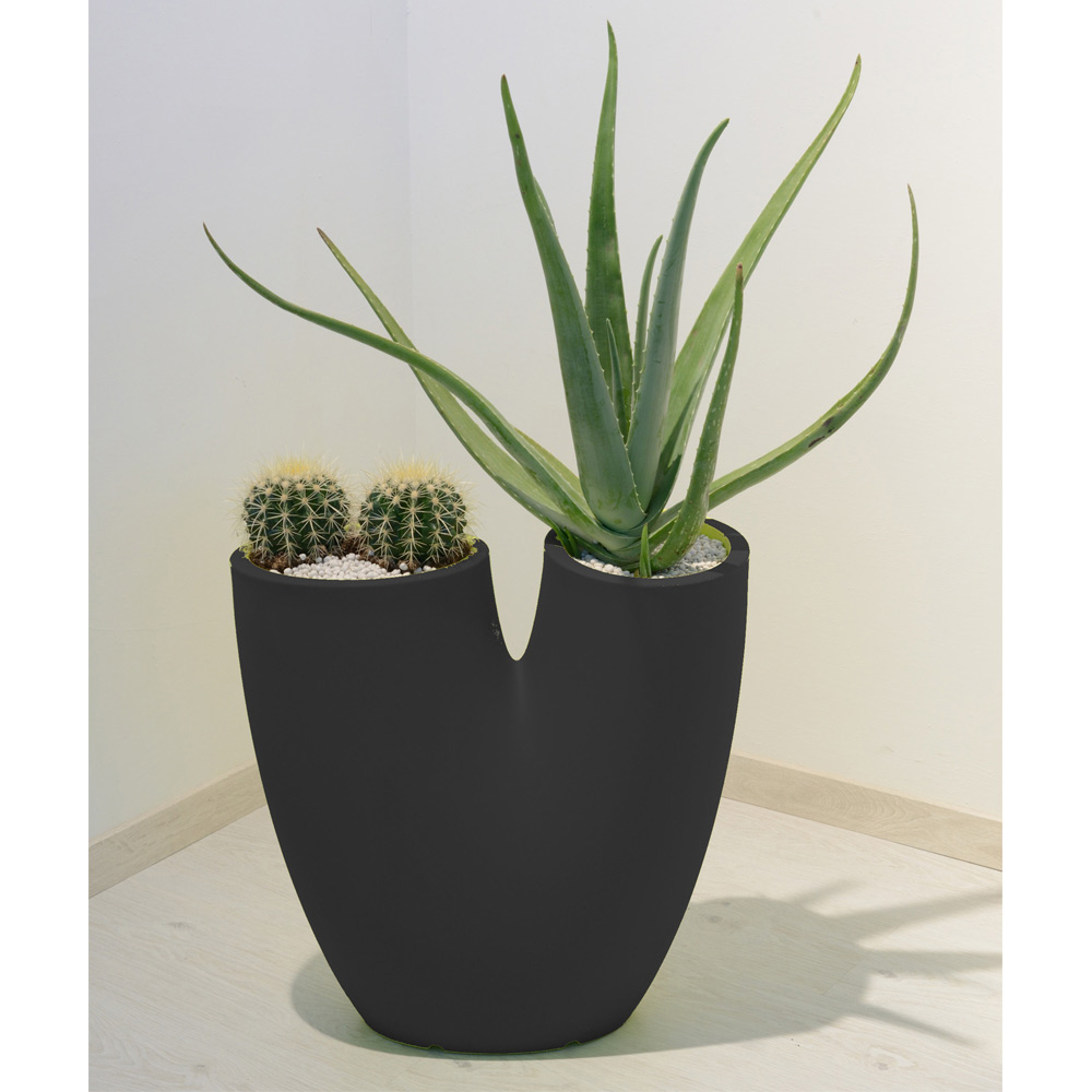 Flowes es un jarrón moderno con un diseño esbelto y cautivador, diseñado para colocar dos tipos de plantas diferentes en un solo jarrón gracias a los dos agujeros existentes. Se puede utilizar tanto como jarrón como portajarrones. Disponible en diferentes colores, se adapta mejor tanto a ambientes exteriores como interiores.