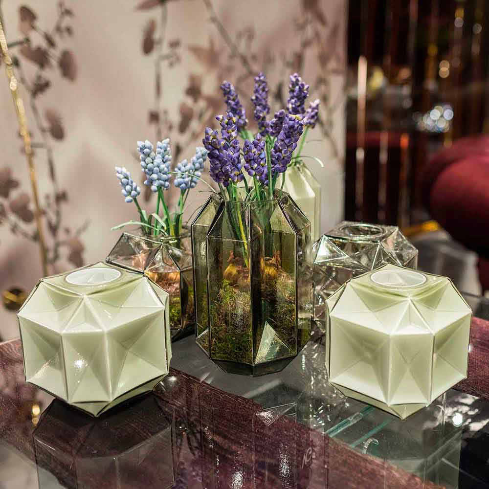 Esta colección de complementos de decoración de lujo da un toque de elegancia moderna a cualquier contract pero también al espacio doméstico, sin renunciar nunca a una atmósfera exclusiva de fuerte impacto visual.