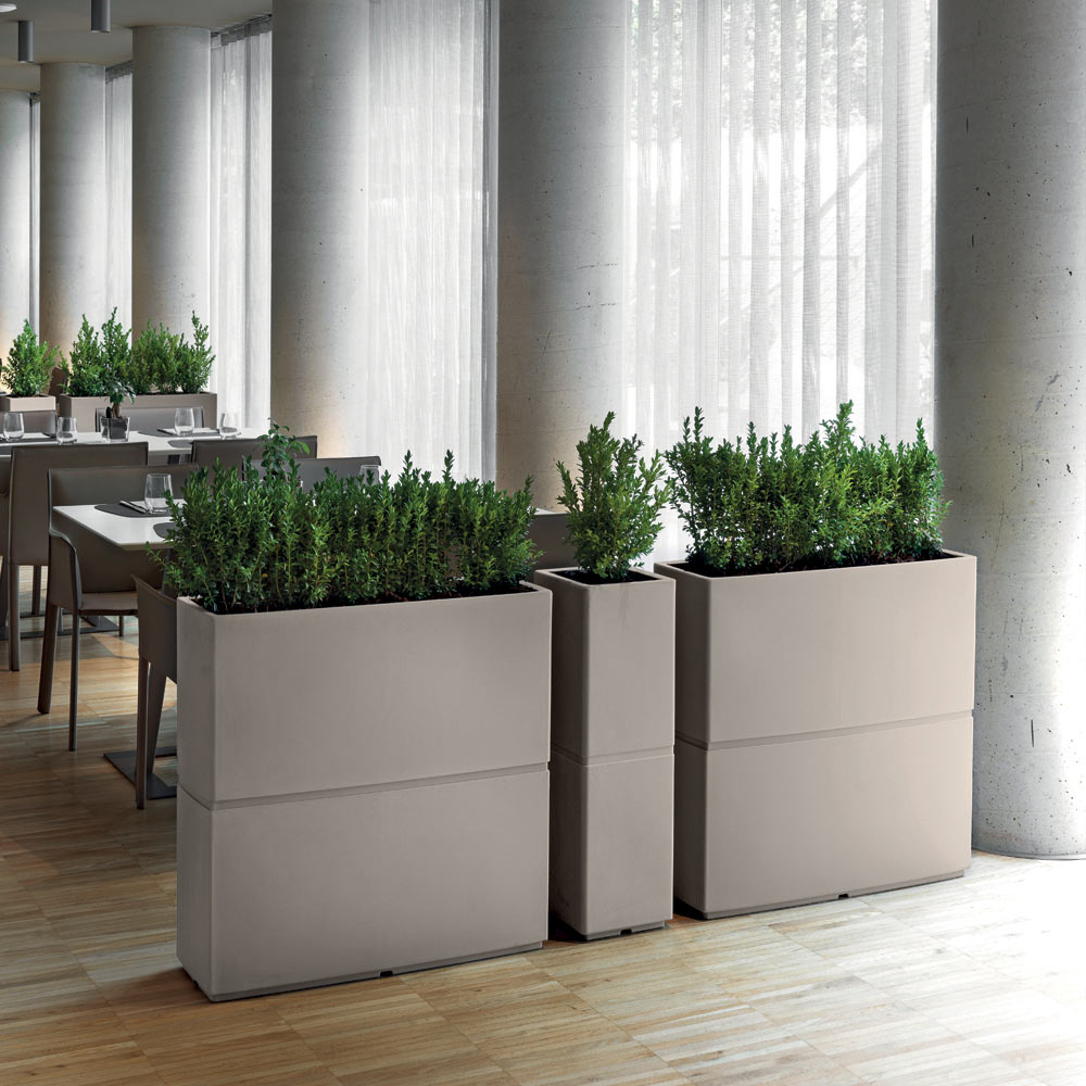 La particular forma de rectángulo o columna permite un uso versátil y funcional de este producto para contener plantas y flores de forma decorativa y asegurar un cierto estilo de orden al ambiente.