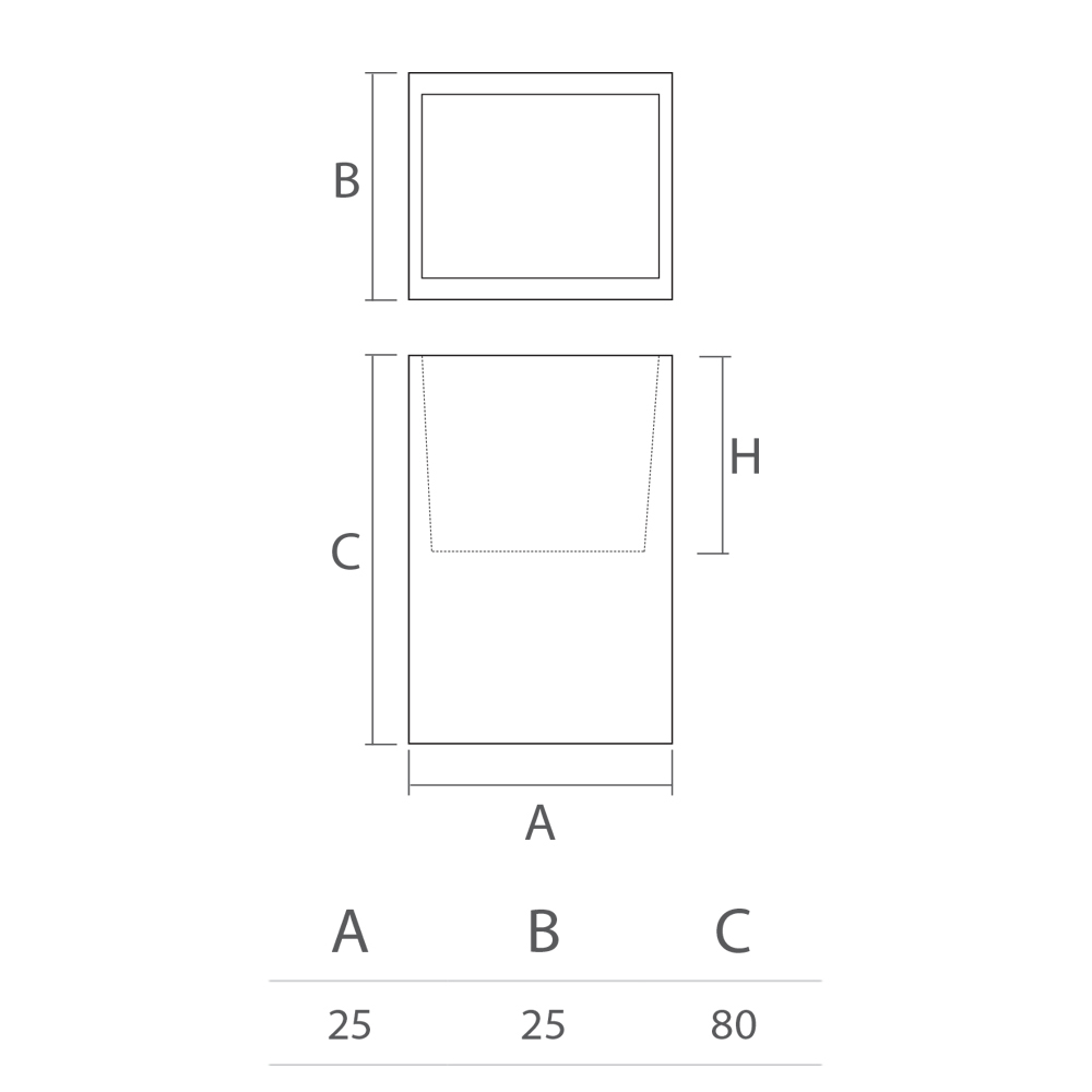 • Largo 25 x Fondo 25 x Alto 80 cm