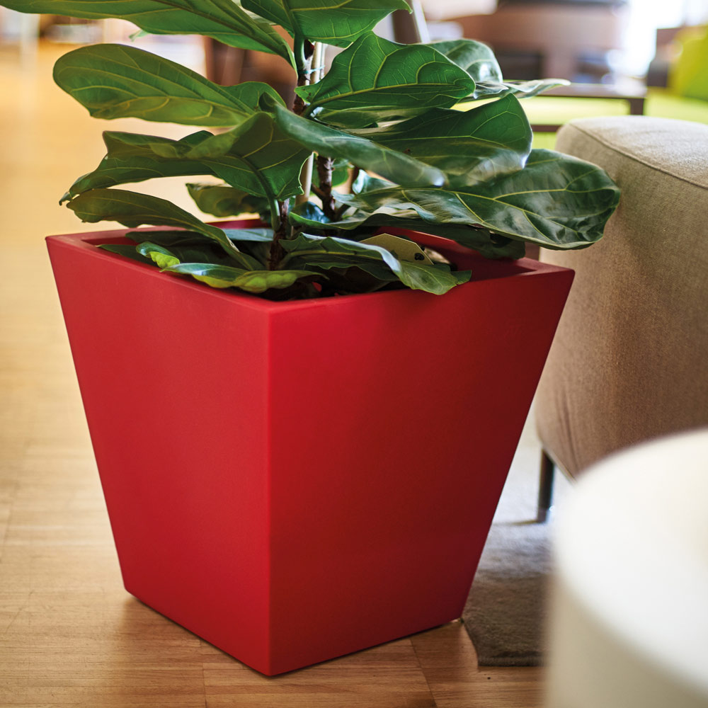 El jarrón de interior en polietileno coloreado fabricado enItalia se caracteriza por su forma cuadrada y representa la solución decorativa perfecta para completar con elegancia los espacios interiores y exteriores. La geometría aparentemente simple de las formas mantiene su estilo vanguardista y permite a quienes buscan un toque de nuevo estilo remodelar los espacios habitables. Del diseño de este jarrón se desprende también la característica versátil y funcional de este elemento para contener plantas y flores de forma ordenada y decorativa.