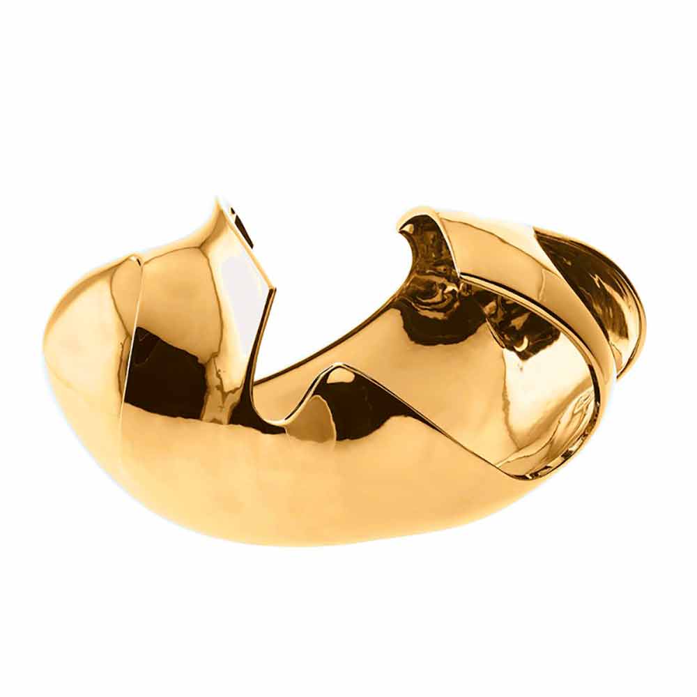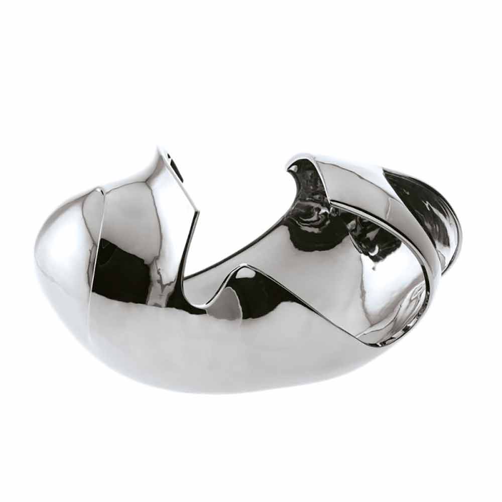 Elegante jarrón decorativo de interior fabricado en Italia en cerámica efecto metal mate (blanco o negro) o en cerámica esmaltada bañada (oro, platino u oro rosa). Un mueble versátil y refinado que se adapta perfectamente a cualquier contexto, tanto doméstico como contract, en el que lleva su alma exclusiva . Su forma particular crea dinamismo enriqueciendo la estética para un resultado original y excéntrico . La gama de colores disponibles junto con su ecléctico tamaño permite colocar este jarrón en cualquier lugar de la casa, logrando así completar salones, comedores, dormitorios o cualquier otro ambiente de estilo moderno con personalidad.