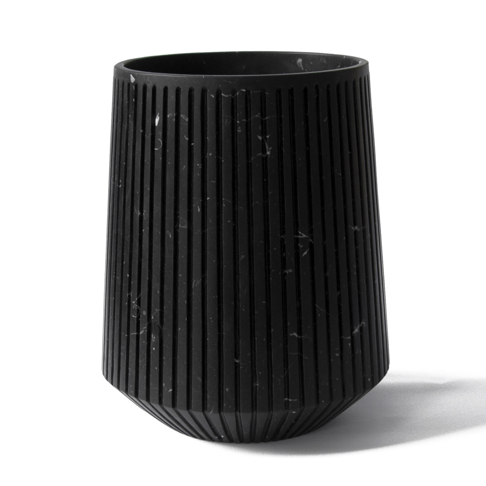 Jarrón grande hecho a mano en mármol blanco o negro con rayas de diseño made in Italy.