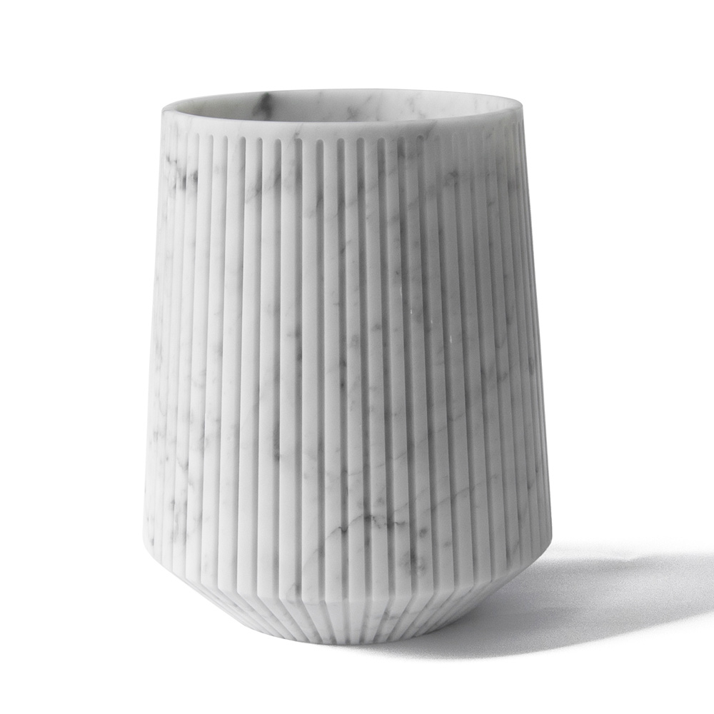 Jarrón decorativo en mármol blanco de Carrara o diseño Portoro con rayas - Cairo