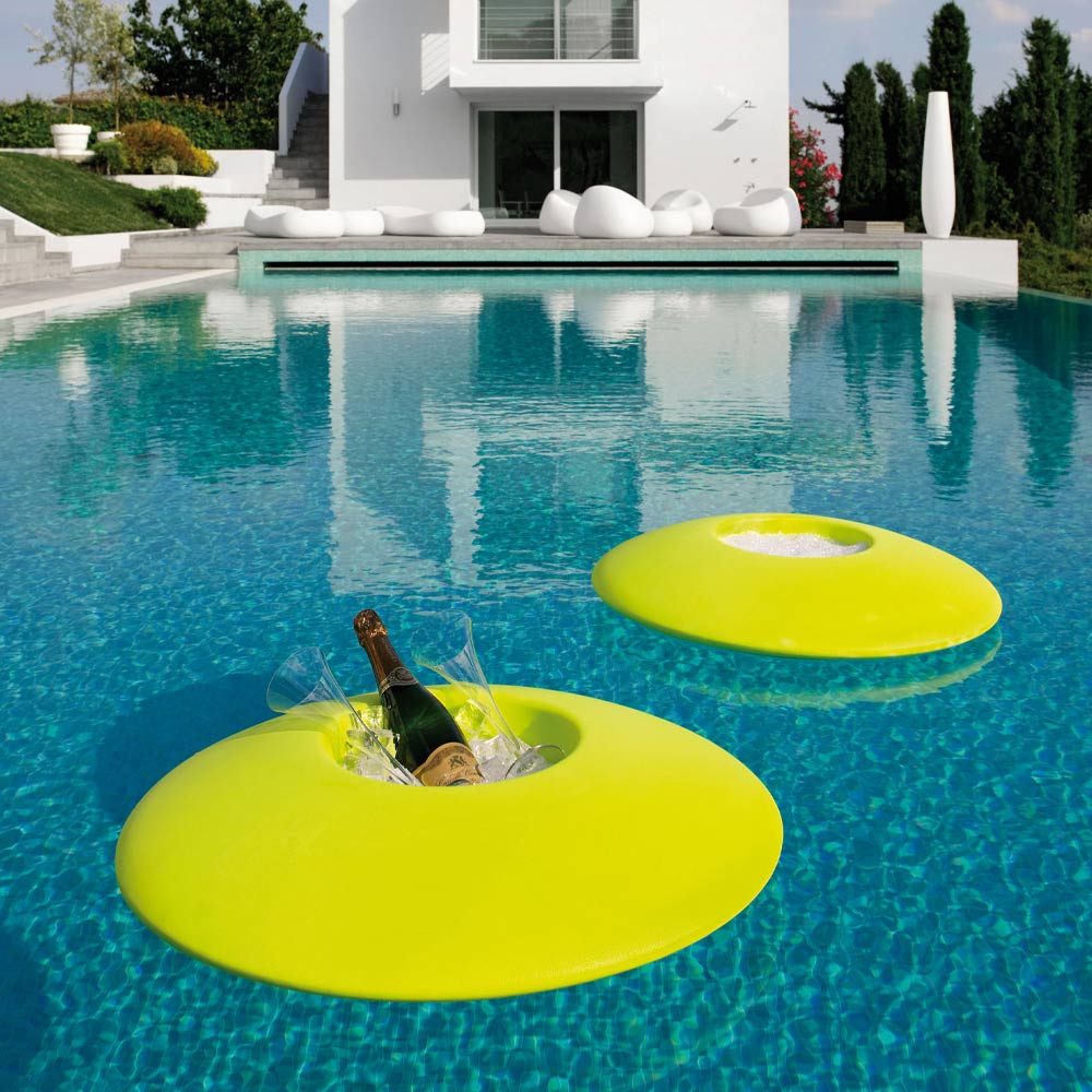 Jarrón flotante de exterior fabricado íntegramente en Italia en polietileno de color con acabado mate. Una idea de decoración extremadamente original con una fuerte personalidad moderna capaz de enriquecer los espacios exteriores equipados con espejos naturales o artificiales. Propuesto en dos formatos, este elemento decorativo para ambientes de exterior es ideal para utilizar como jarrón creativo para plantas pero también es perfecto como práctico contenedor flotante en situaciones como piscinas o spas donde, además de enriquecer de color el mobiliario circundante, ofrece una solución particularmente funcional.