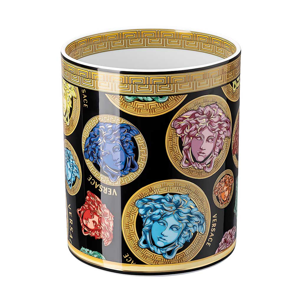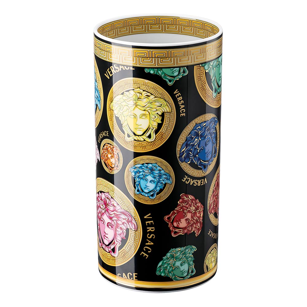El jarrón Medusa Amplified Multicolor de Versace , realizado en refinada porcelana , es una auténtica joya del diseño. Su cautivador motivo resalta la icónica Medusa , reinterpretada en una vibrante variedad de colores que se destacan elegantemente sobre el fondo negro brillante . El marco superior decorado con el clásico motivo griego dorado añade un toque de refinamiento y opulencia, convirtiendo este jarrón en una auténtica obra de arte.