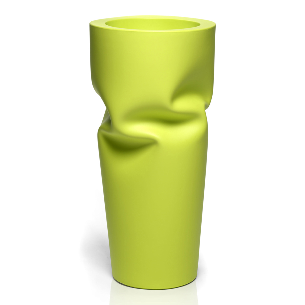 Jarrón de exterior fabricado íntegramente en Italia en polietileno de color con acabado mate . Un mueble original y versátil que proviene de un proceso particular en el que el jarrón es sometido a un tratamiento de "compresión" cuando el material aún es parcialmente maleable o inmediatamente después de haberlo extraído del molde. Así nace un elemento industrial que adquiere una estética diferente de vez en cuando a través de una acción artesanal que produce piezas únicas. El resultado es un jarrón moderno ideal para completar cualquier espacio exterior doméstico o contract con un toque de color y personalidad.