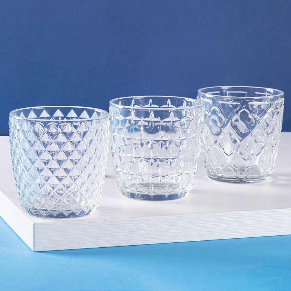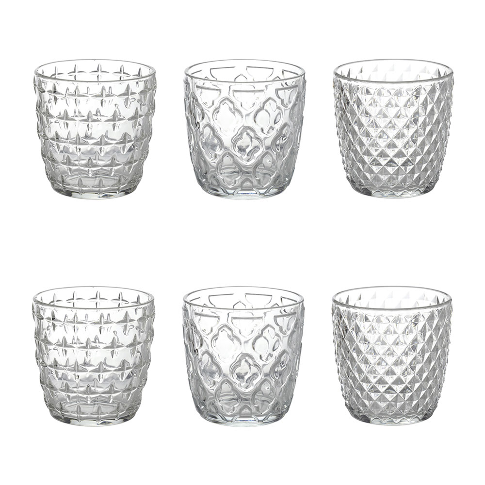 Este juego de 12 vasos de vidrio transparente es una obra maestra de refinamiento y brillantez . Cada pieza cuenta con un diseño único , con texturas intrincadas que van desde patrones geométricos hasta orgánicos, reflejando la luz en juegos de brillo y refracción . El conjunto se compone de variaciones de estilo que incluyen el clásico corte de diamante, elegantes ondas y refinadas tallas florales, ofreciendo no solo un vaso para cada bebida sino también para cada personalidad. Estas copas son perfectas para servir aguas aromáticas o cócteles sofisticados, aportando un toque de glamour a cualquier ocasión. Son el símbolo de la elegancia atemporal , hechos para quienes aman rodearse de objetos que cuentan historias de artesanía y diseño tradicionales .