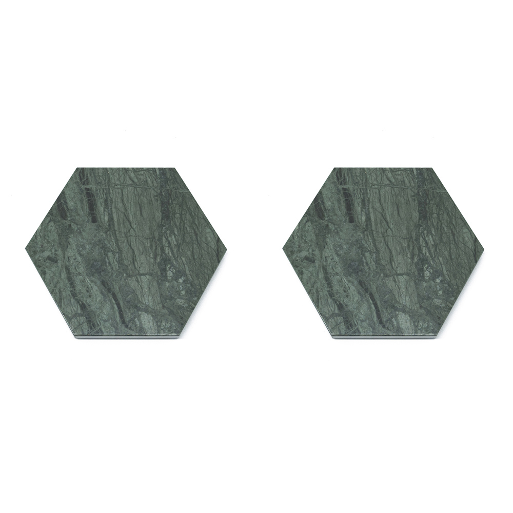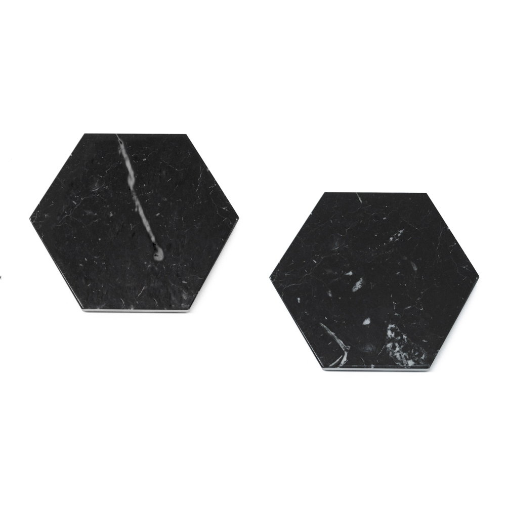 Estos posavasos de mármol son un ejemplo de sofisticación funcional para el hogar contemporáneo. Cortados en forma hexagonal, un placer geométrico para la vista, y adornados con las vetas naturales y cambiantes del mármol, estos posavasos no sólo son prácticos, sino también verdaderos toques de elegancia para su mesa.