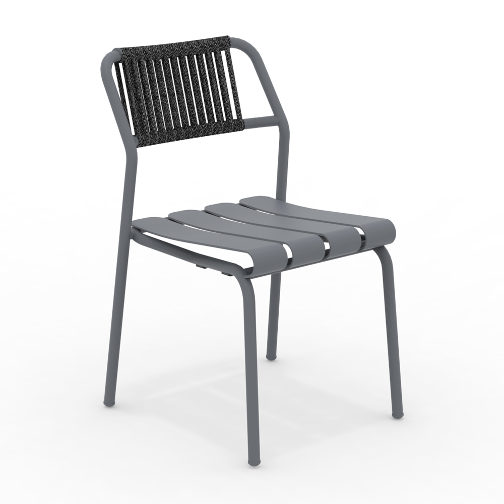 Su estructura ligera pero robusta está diseñada para ofrecer la máxima comodidad, con un asiento ergonómico y un respaldo moldeado de cuerda que garantizan un soporte cómodo y relajante. Las láminas de aluminio le dan un aspecto dinámico y moderno, mientras que el acabado añade un toque de elegancia y refinamiento.