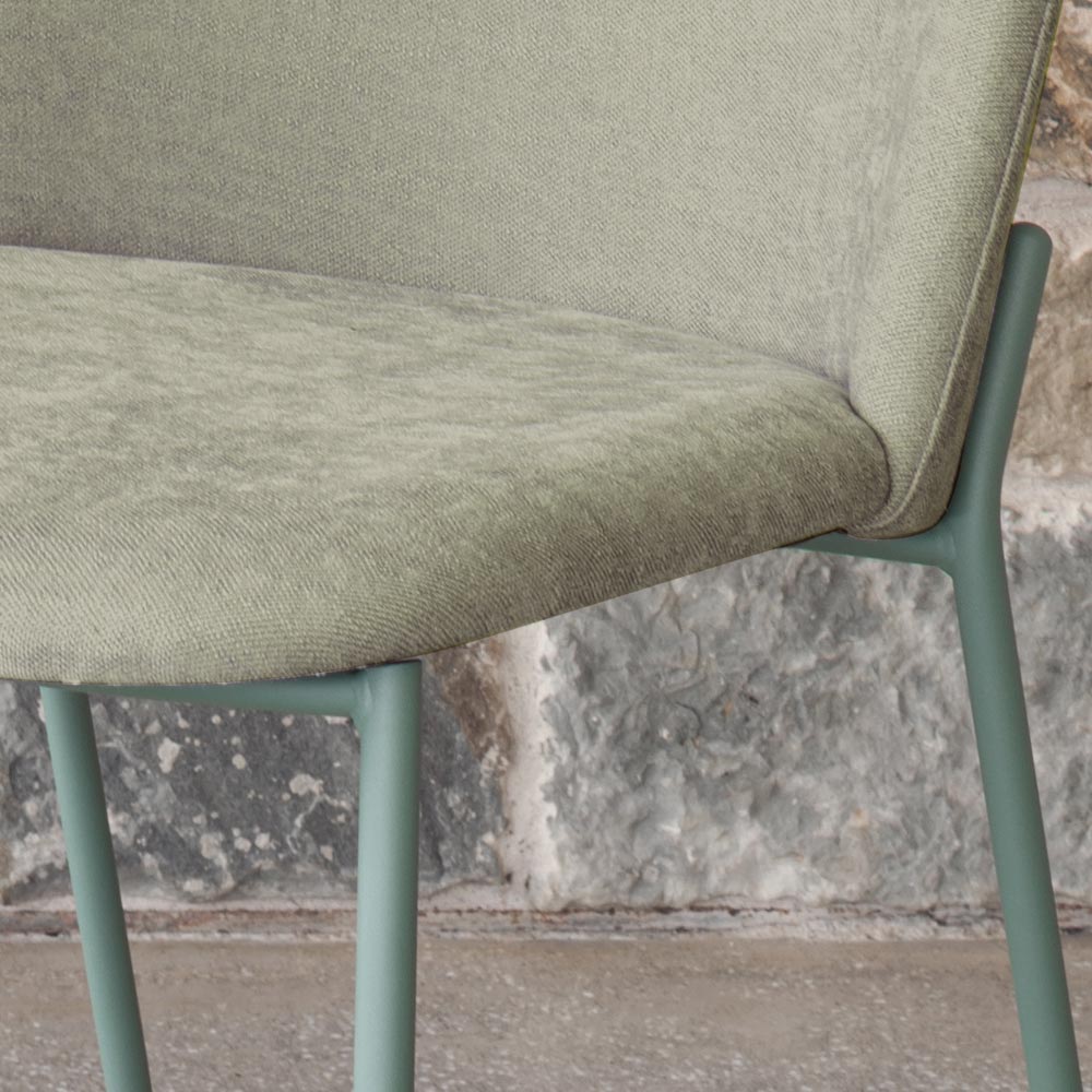 Conjunto de 2 sillas de salón realizadas con patas de metal con recubrimiento en polvo , asiento tapizado en tela y costuras a juego , íntegramente Made in Italy.