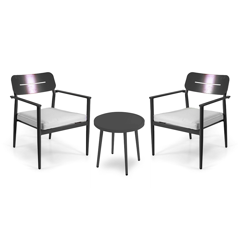 Además, el aspecto minimalista y las líneas limpias de este conjunto son especialmente adecuadas para contextos modernos, integrándose perfectamente en jardines, terrazas o balcones, donde el espacio es precioso pero no se quiere renunciar al estilo y al confort.